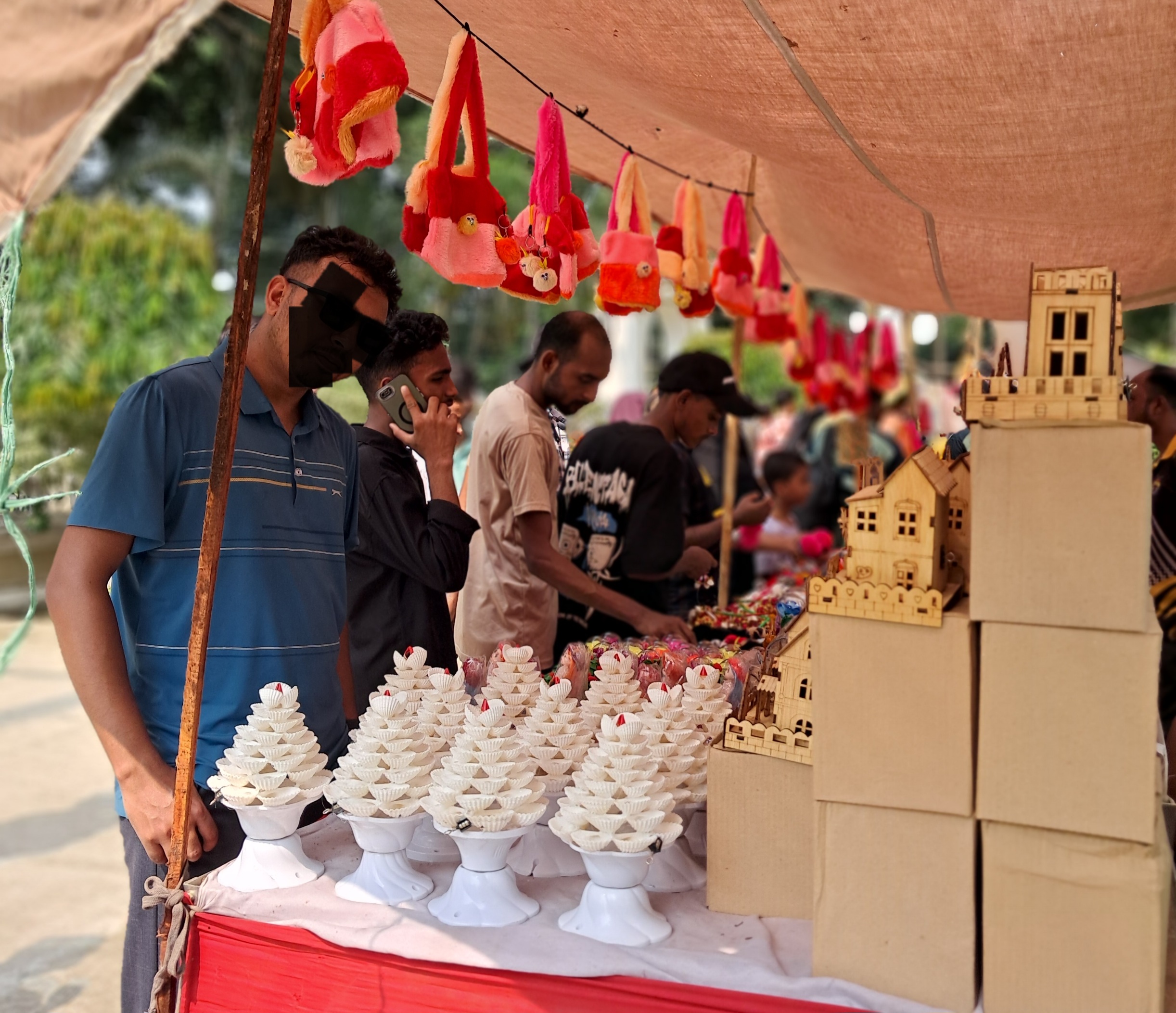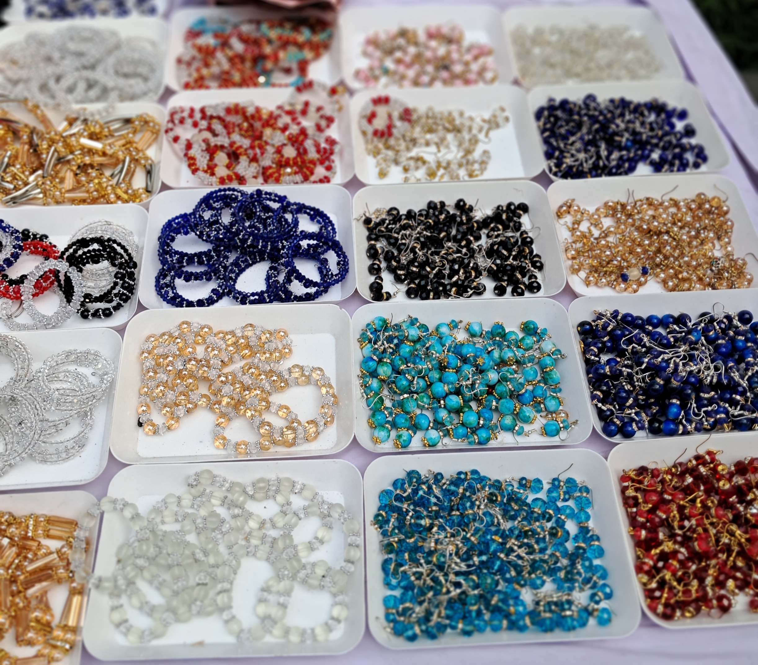 Here you will find small hand-stitched earrings and earrings for women and young girls. These are usually priced at 100-200 taka or 10-20 Steem. These are arranged face to face in a box so that customers can choose and buy as they wish. There are some more attractive glass necklaces in front of you, which are the most attractive to look at. These are usually priced between 500 taka or 50 Steem approx.