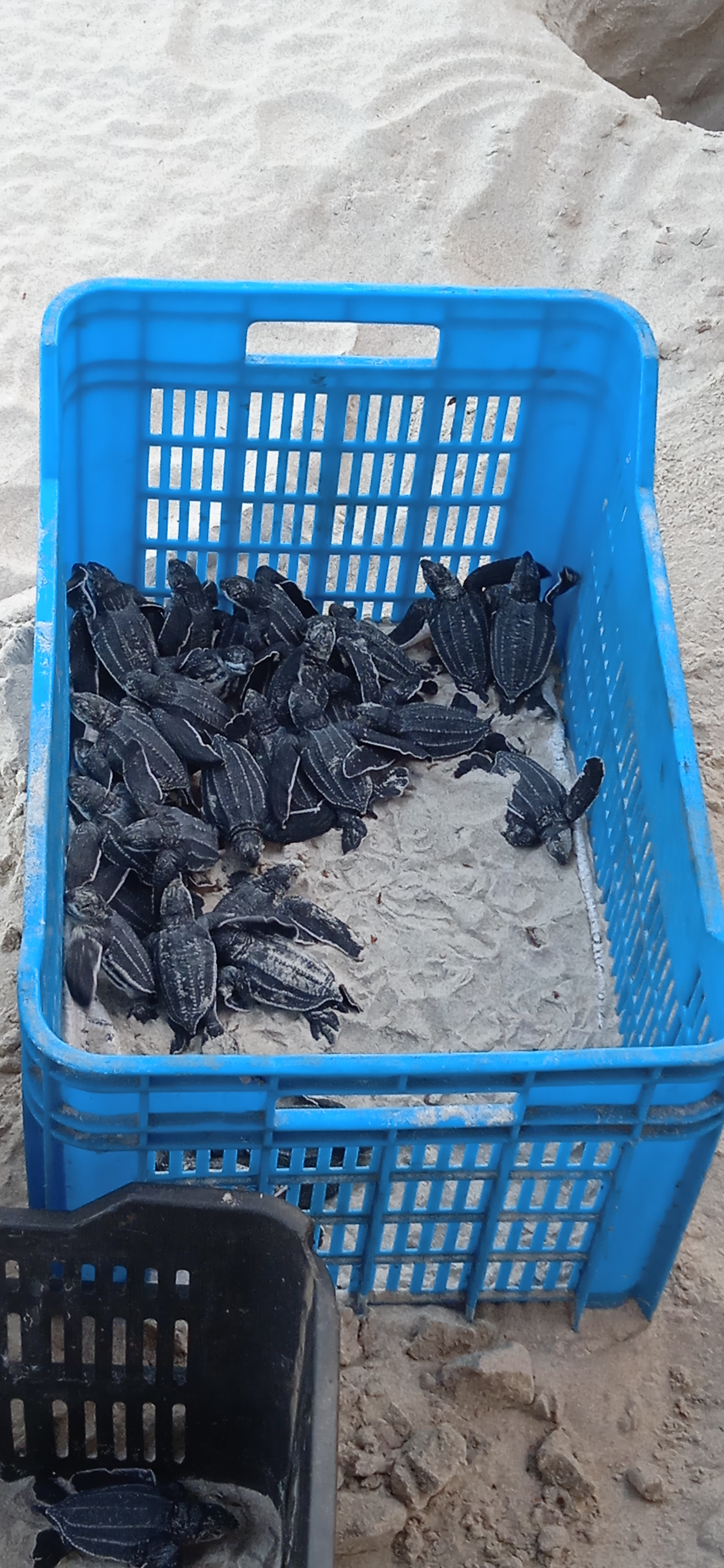 Fue muy grata la sorpresa al enterarme que en el lugar donde yacían, se encontraba un grupo ecologista que vela por la seguridad y cuidado de las tortugas para su posterior liberación.