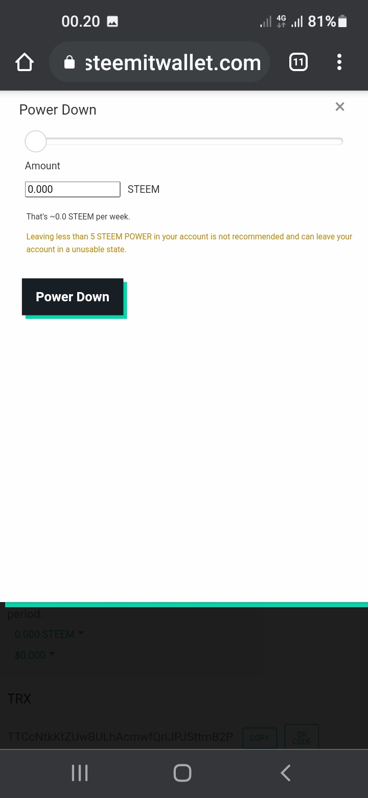 Dan masukan dominannya lalu tekan tombol Power dwon. setelah itu kita tinggal menunggu proses Power dwon selasai dan cek kembali wallet anda.