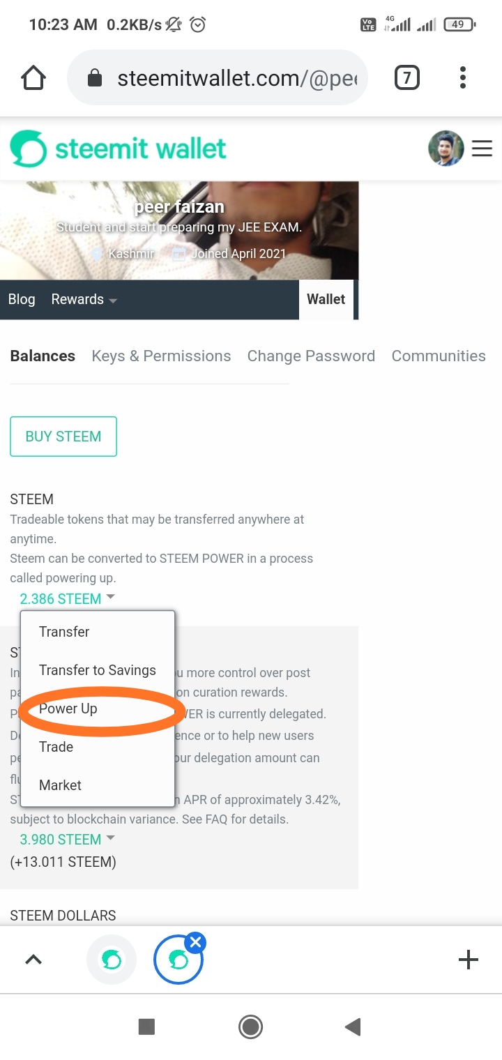 Then we have to click the arrow beside the Steem dollar balance. After that need to select transfer.