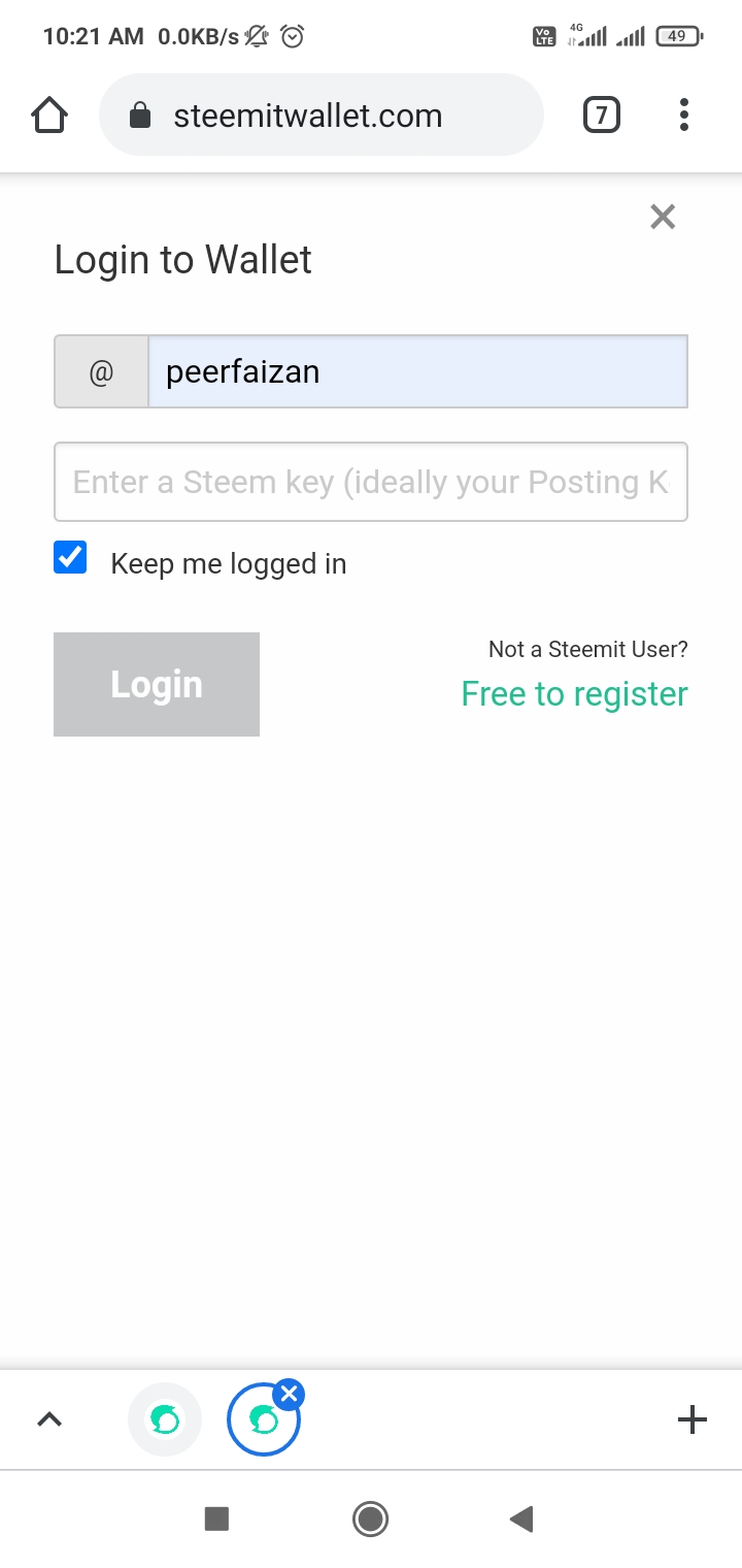 At first using Active key, I have to log in to my Steemit Wallet.
