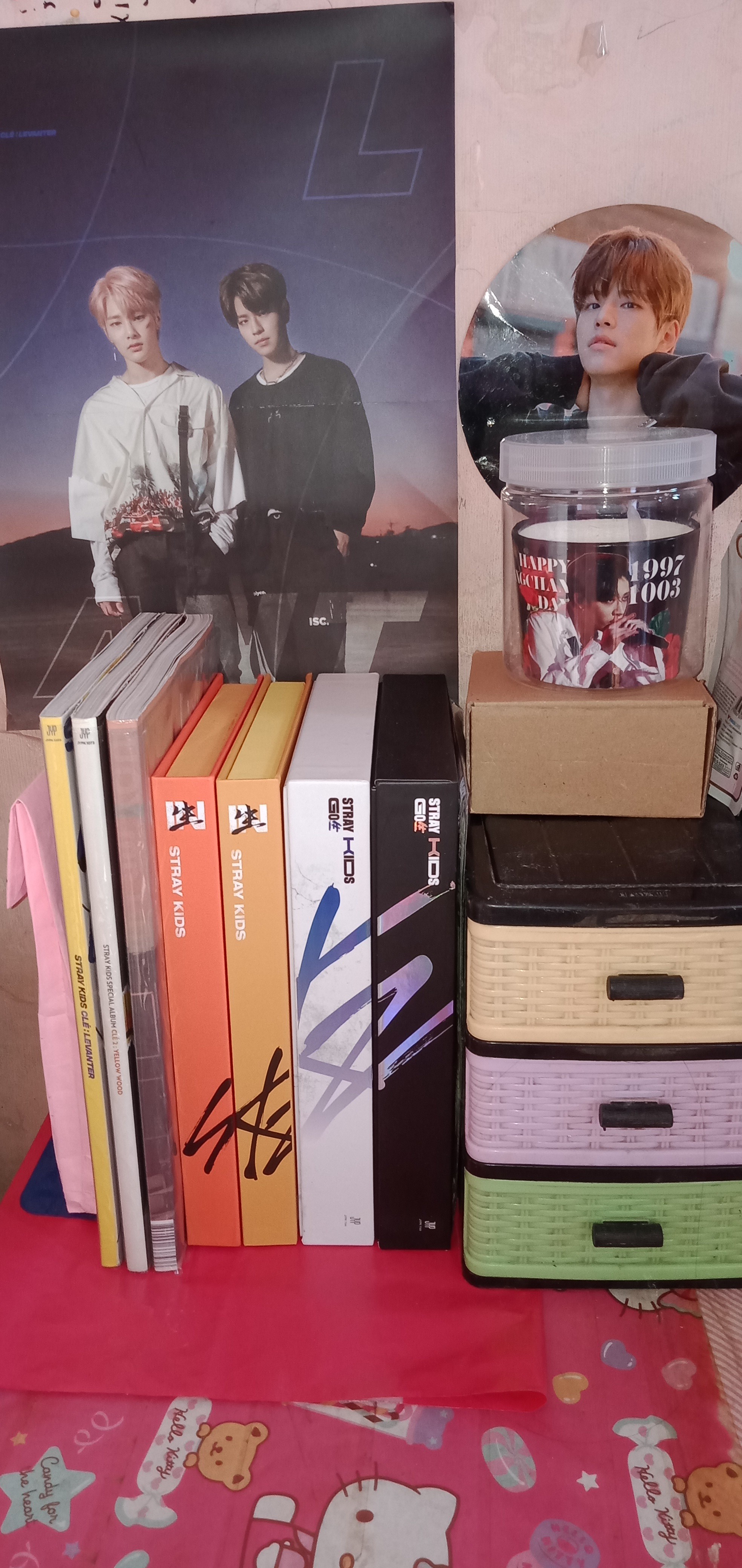 Selain menyukai lettering aku juga merupakan fangirl dari grup kpop Stray Kids. Pasti banyak yang belum familiar ya sama grup ini? Tidak apa, Stray Kids memang belum se-tenar BTS tapi mereka juga cukup berprestasi loh. Aku memiliki beberapa album dan photocard Stray Kids. Sebagian dari album dan photocard yang kumiliki merupakan hasil dari giveaway yang kumenangkan di twitter :)