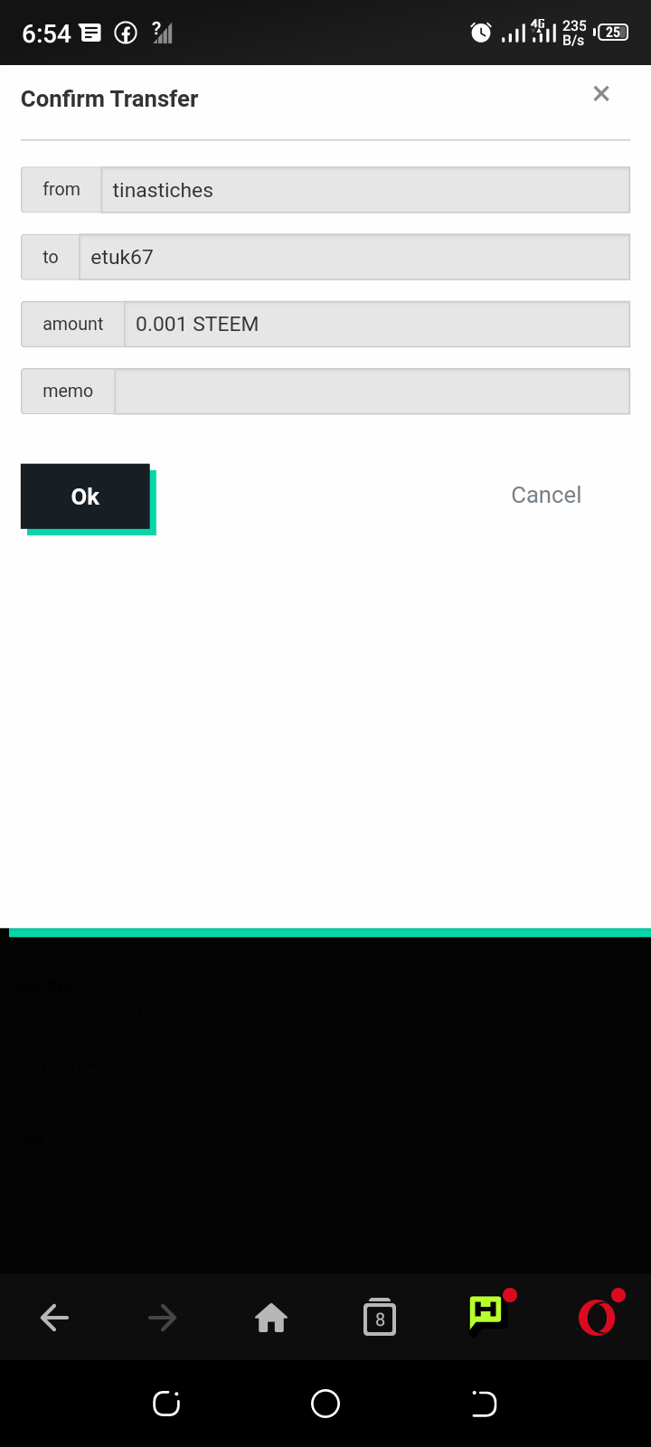 A confirmation page will open up and you click on ok to confirm transaction.