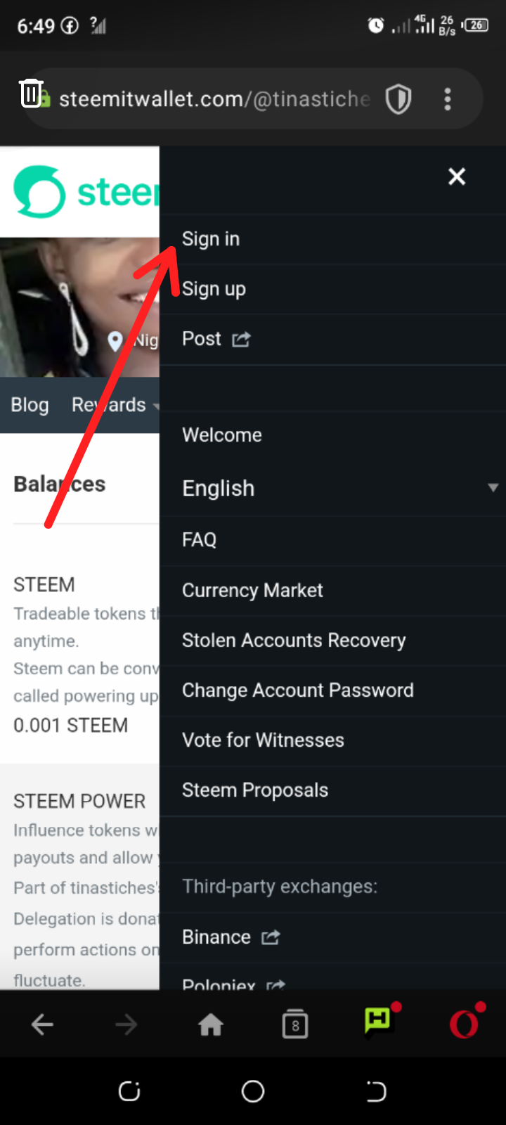 First of all click on wallet, login your wallet using the posting key.