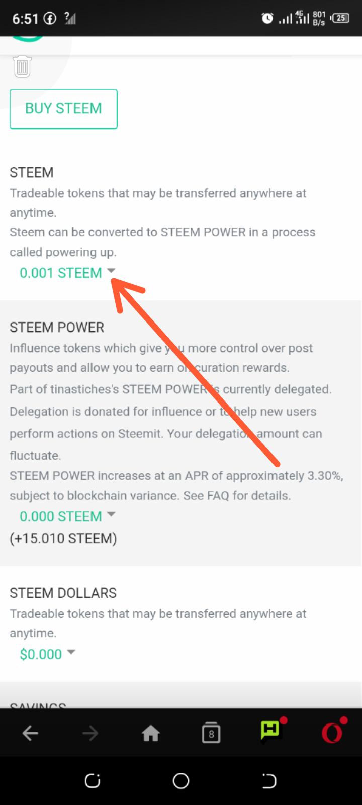 So after login, the dropdown arrow appears beside the steem tokens