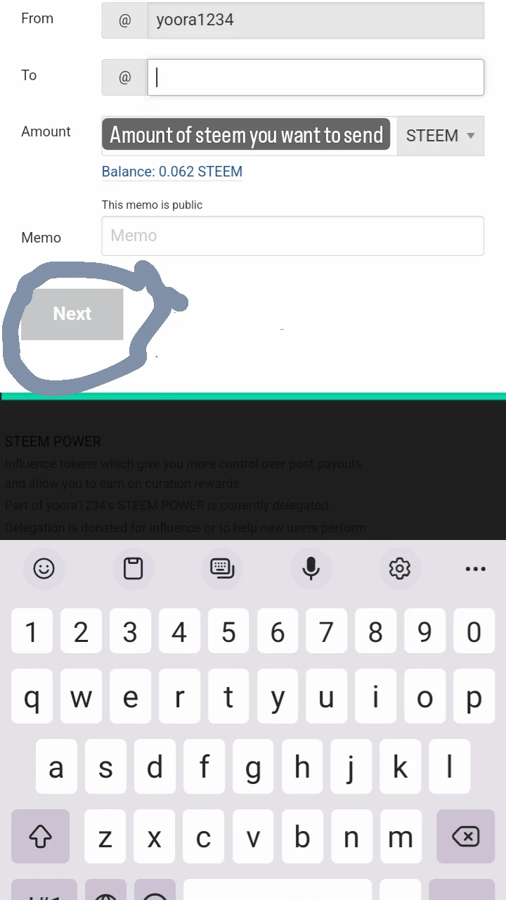 3_ type the username of the account you want to send the STEEM, and enter the amount of steem to send. finally, click submit.