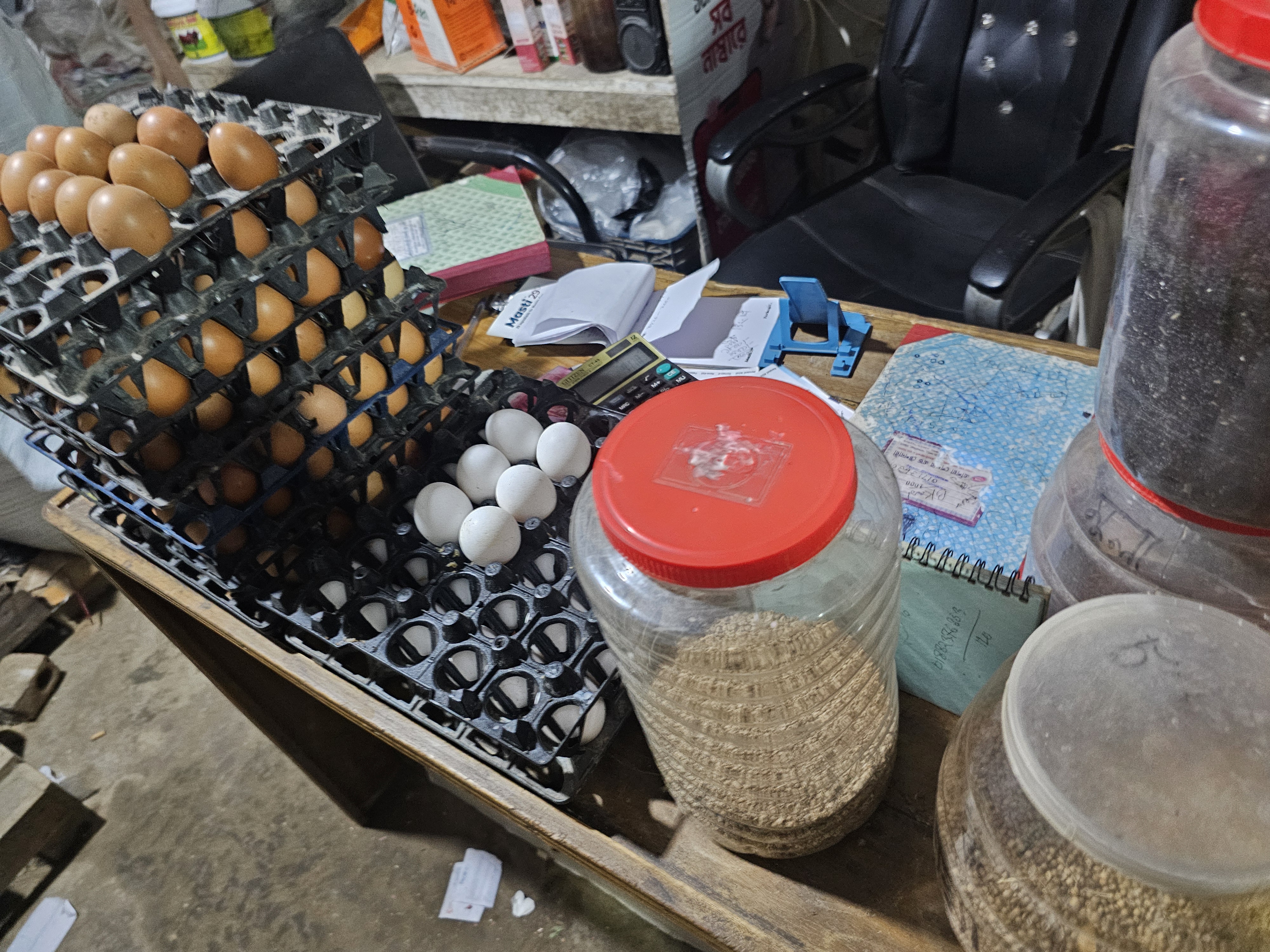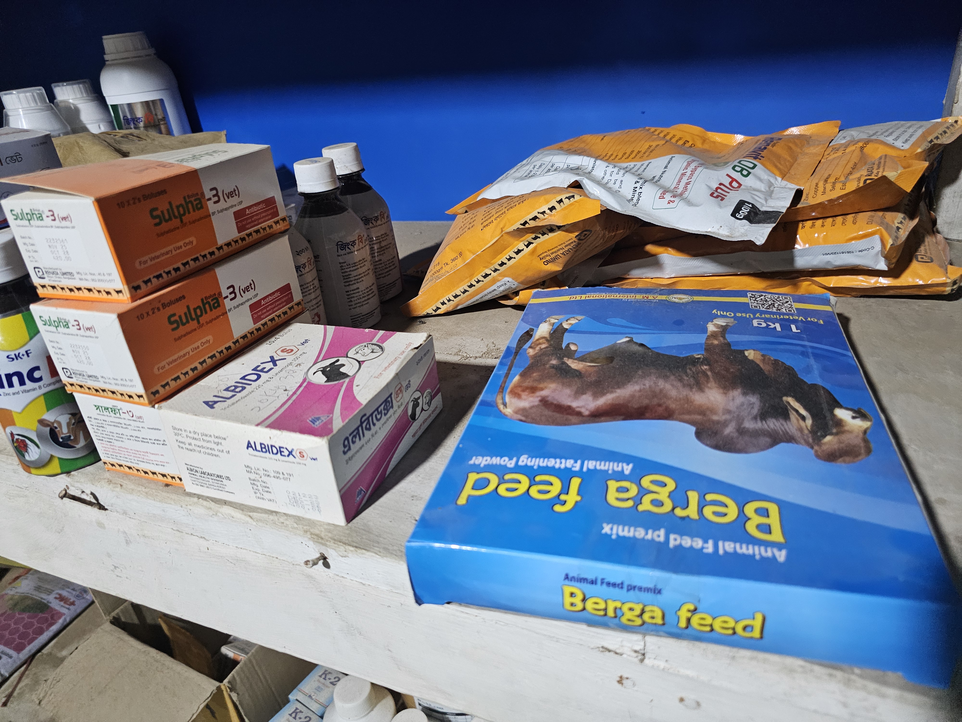 This shop sells various types of animal medicines, food, and pesticides. All kinds of these things are sold here. Chicken eggs are also sold here. Food for ducks and chickens is sold here at wholesale and retail prices. In this shop, everyone can buy food, pesticides, and even medicines for animals very easily. The medicines that are needed for any problem of animals and birds are here. And if you want, it will be possible to buy medicines from here by talking according to the problem of the animal and bird. Here, duck and chicken food is sold by kg, and again, it is sold in bags.