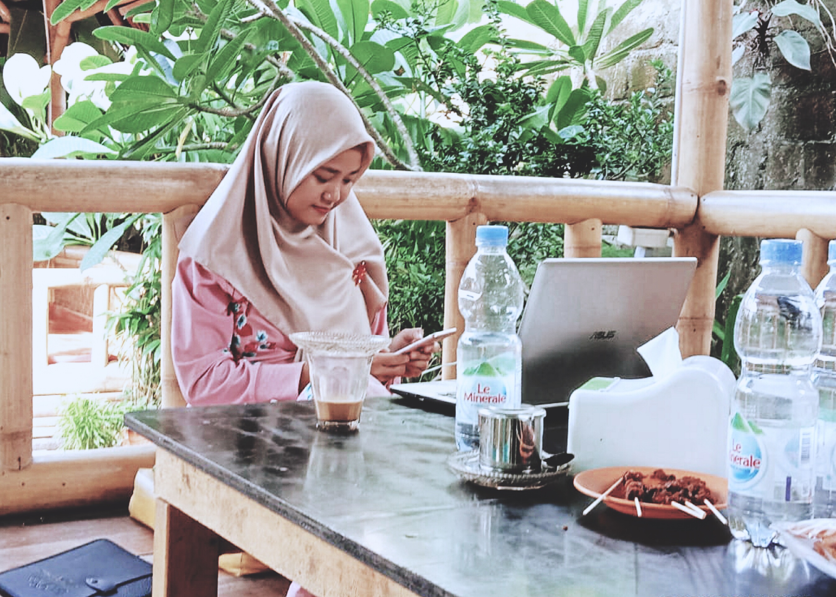 A cafe with a comfortable atmosphere, even though it is crowded with visitors, we can get it if the cafe has a large space and good air circulation, so we don't feel dizzy. And also a lot of natural spot to make us feel always fresh like being in the open.