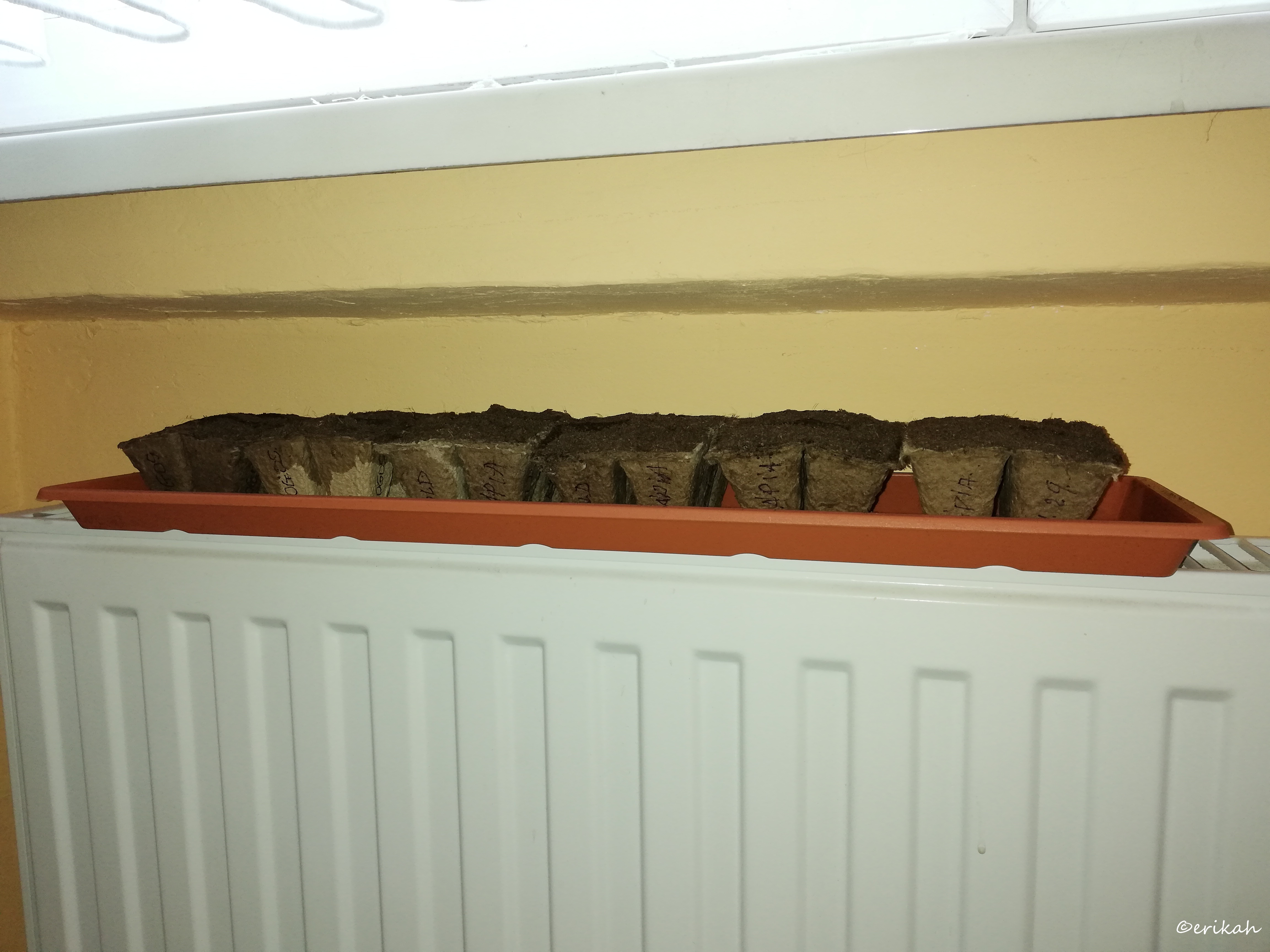 Seeds need to be kept warm in order to germinate, so I placed them on the top of the radiator till they start to grow. After that they need light.