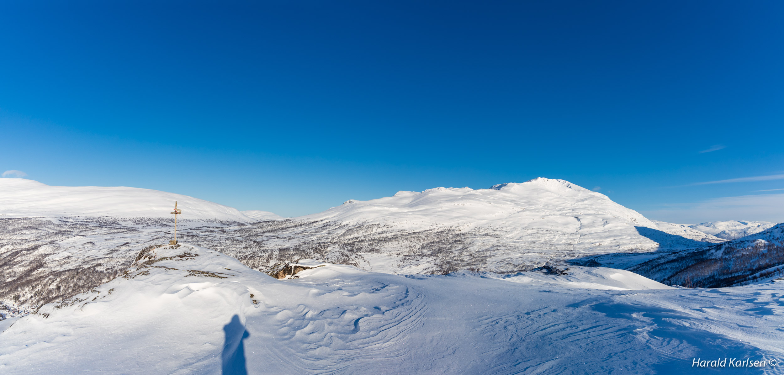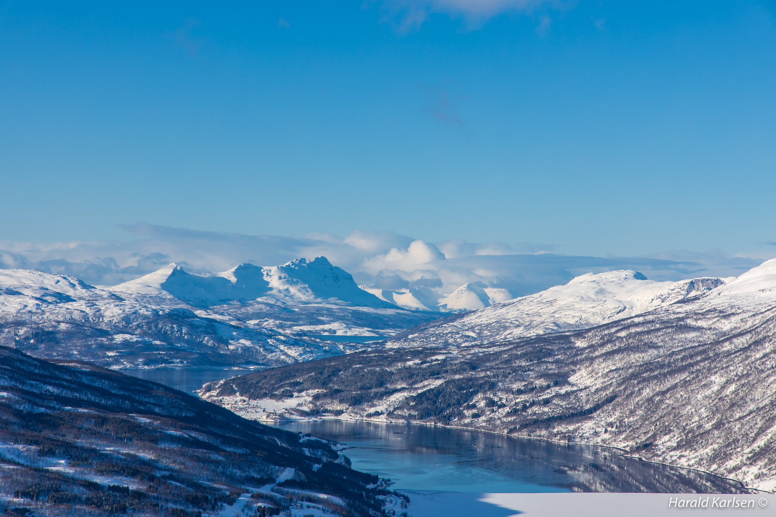 Above the fjord in Gratangen is a quite spectacular cabin located. On the edge of a little peak called Snolke (502 m. above the sea) are the cabin with panorama view to the fjord and the mountains in all directions. Snolke is a strange name, I don't have a clue what it means, maybe a local nickname or something on sami language. I forget to ask about it.