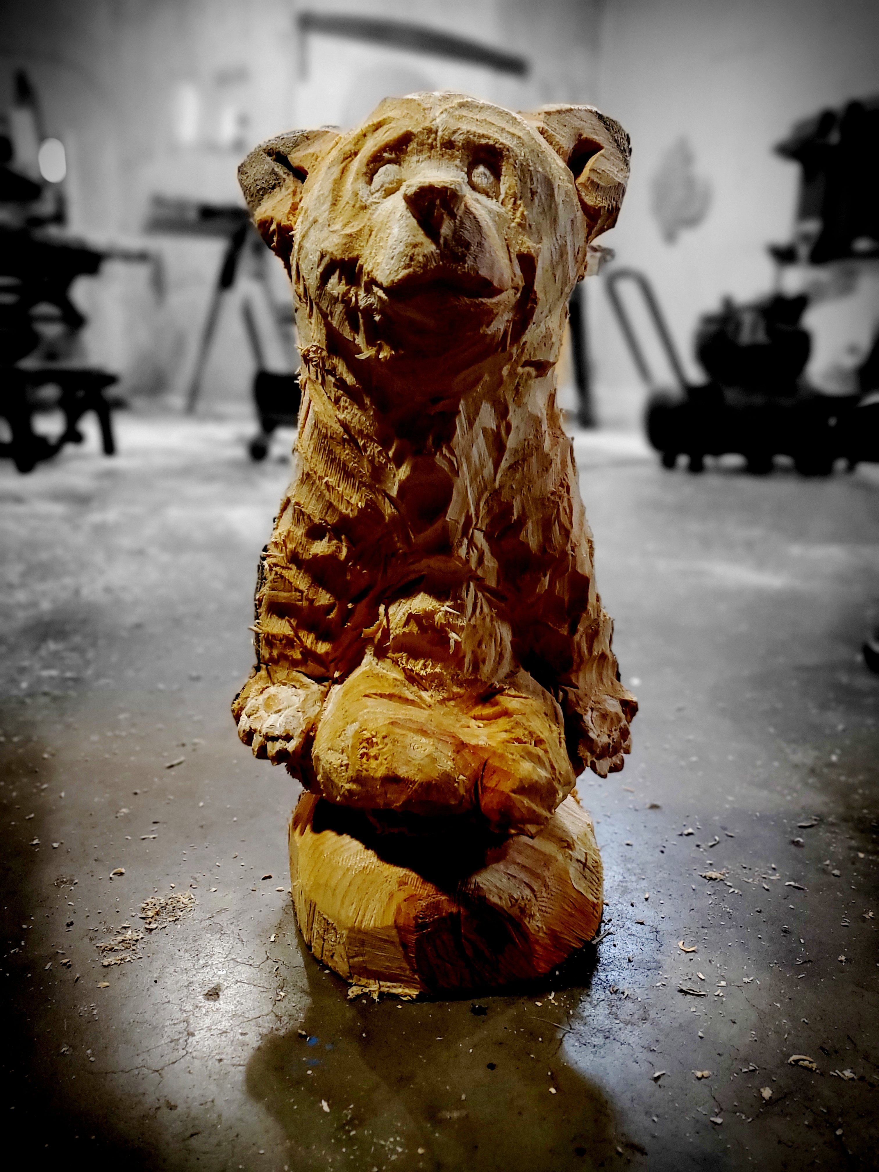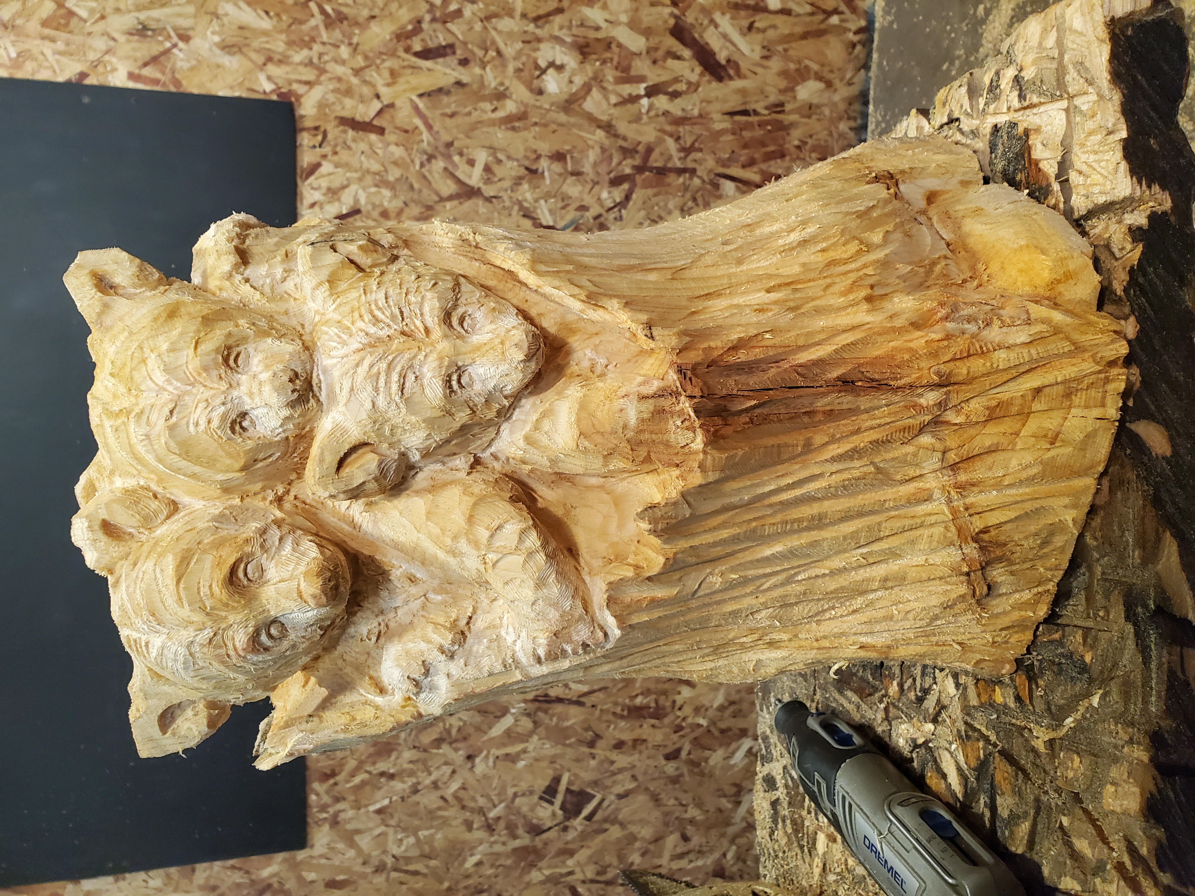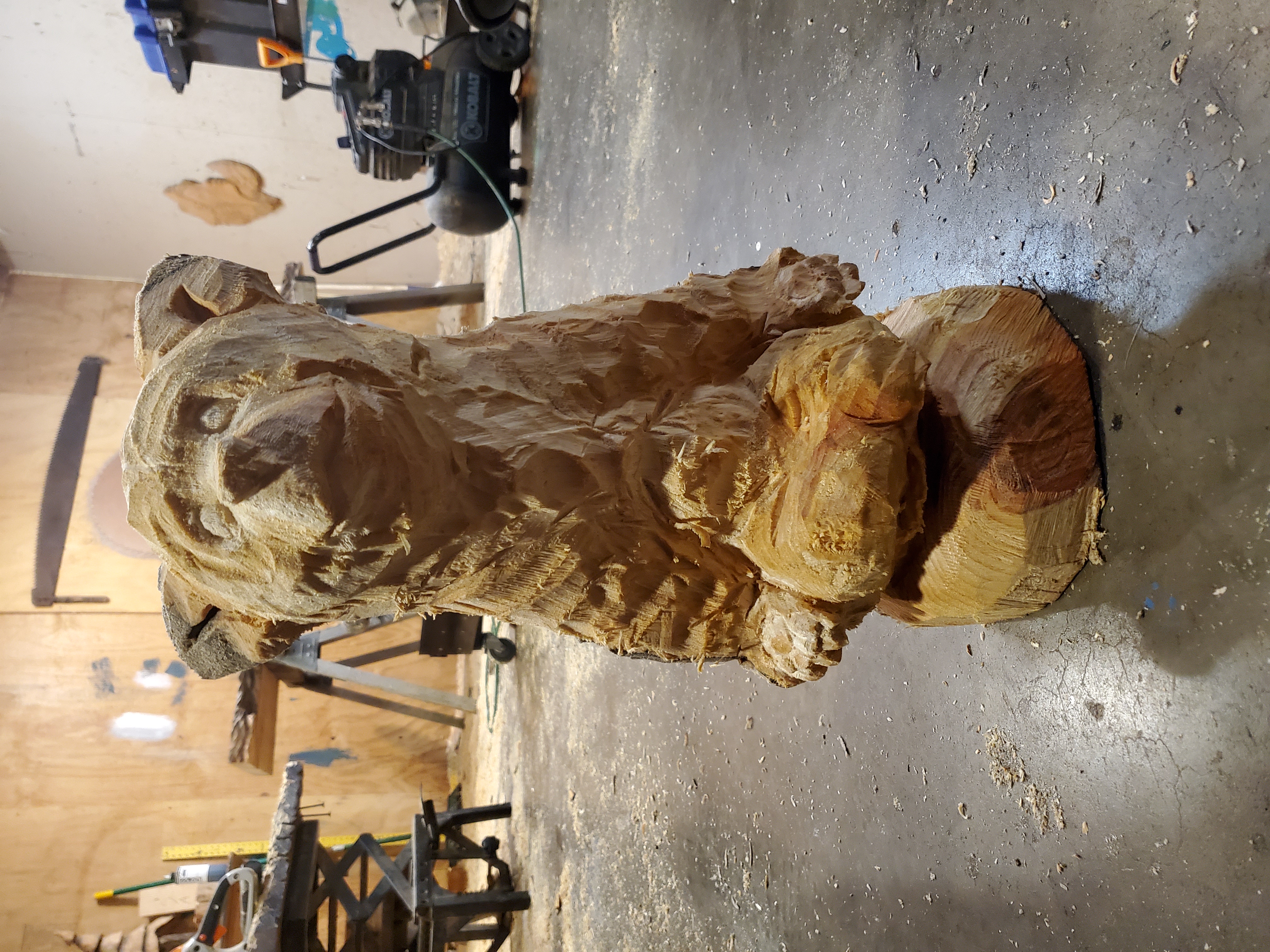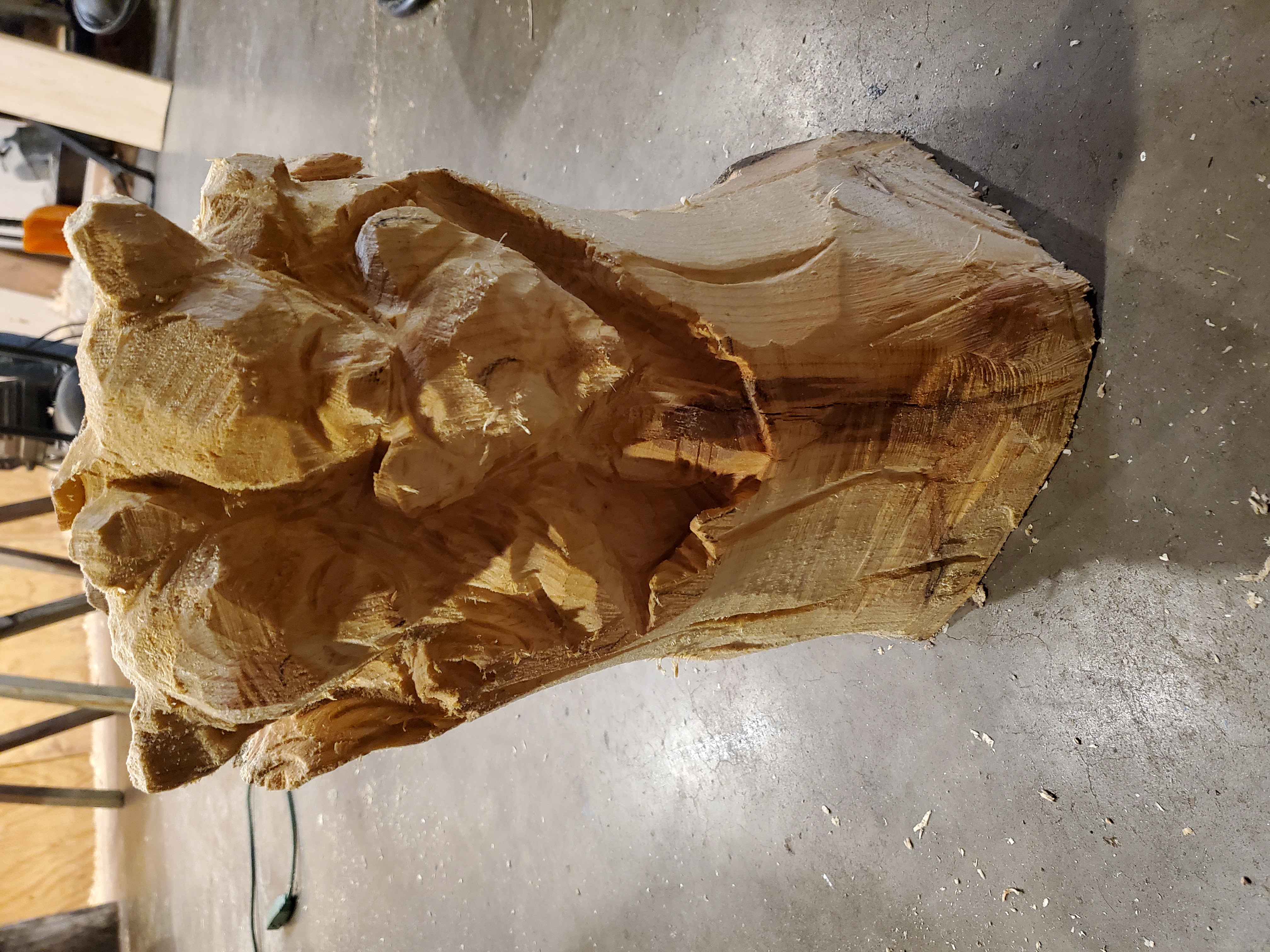 Chainsaw carving for me, is like a form of therapy or meditation if you will. When carving commissions, I dont enjoy it as much. Feels like a job sometimes unless its something I wanted to carve. So I'll break off and carve something from imagination. To gather my thoughts.