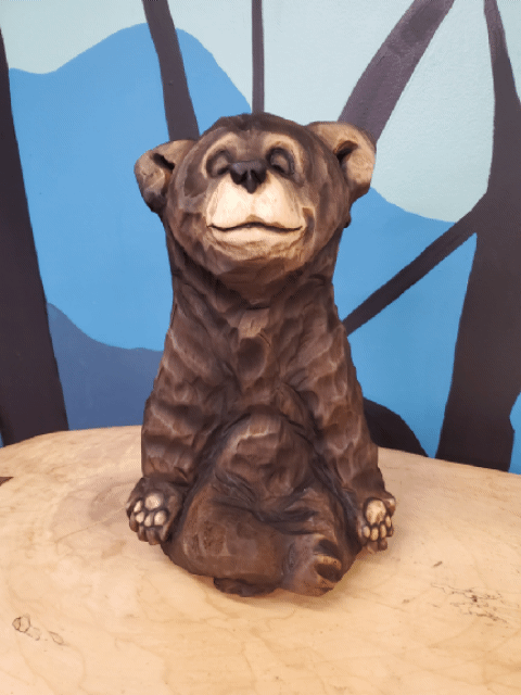 Heres a couple pieces I carved last week, starting with my first, a bear in meditation.