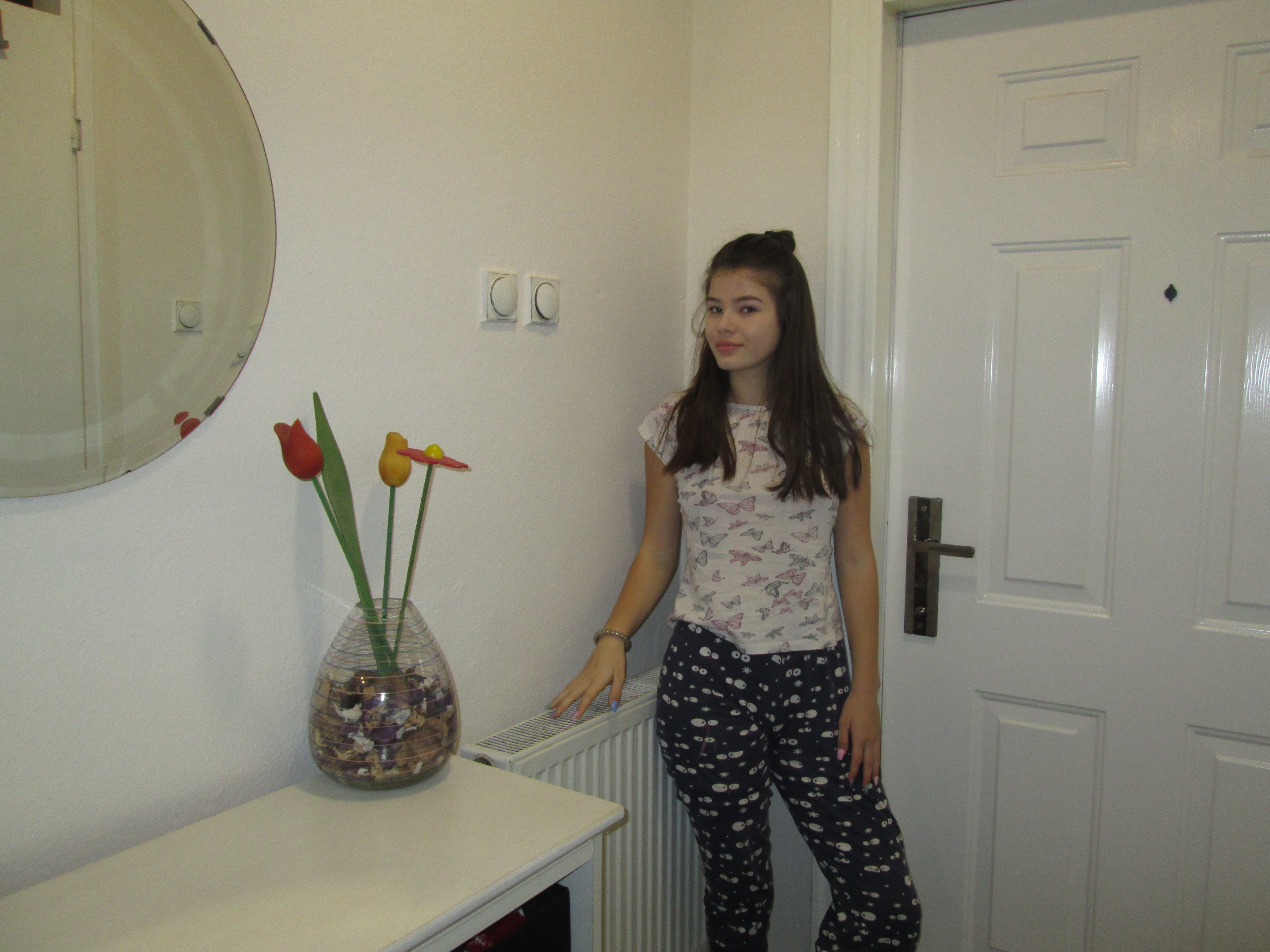 Искористила сам овај тренутак да се фотографишем. Као и увек мој брат ме је фотографисао. Мислим да се види по мом изразу лица колико сам задовољна урађеним послом. Можда ћу у будућности научити још неки занат. Никад се не зна. Већ знам да штрикам и да кречим. Шта је следеће? Мене занима.
