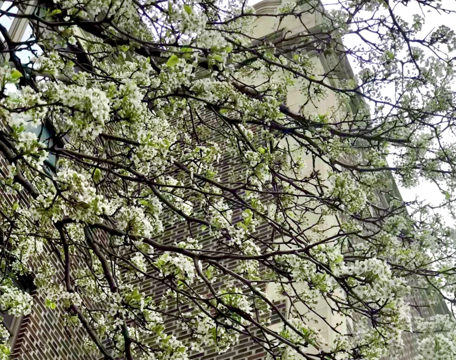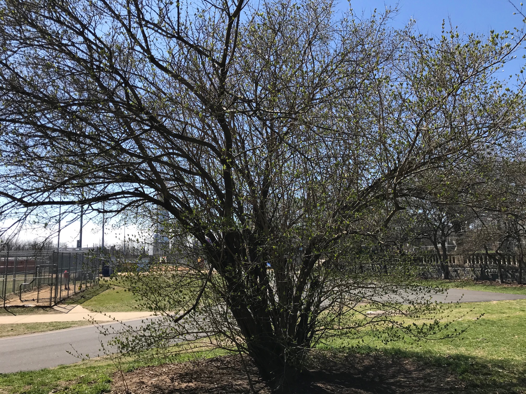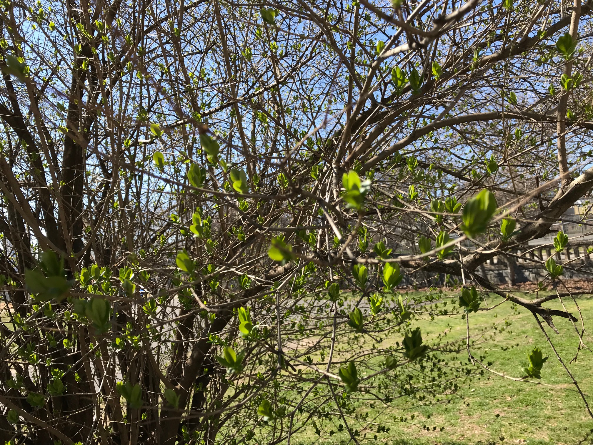 Spring arrived and trees are getting their green coats on. This bush looks happy to me.