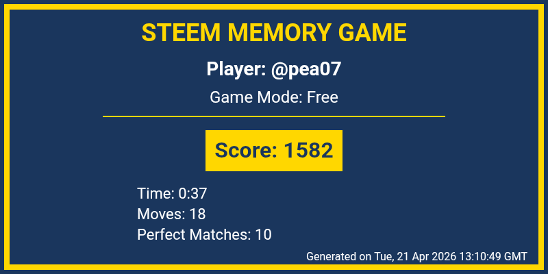 Today I played Steem Memory Game again after a 2 days and I really enjoyed my experience. Compared to my previous experience, I tried to play more carefully so that I could improve my score and I am a bit successful.