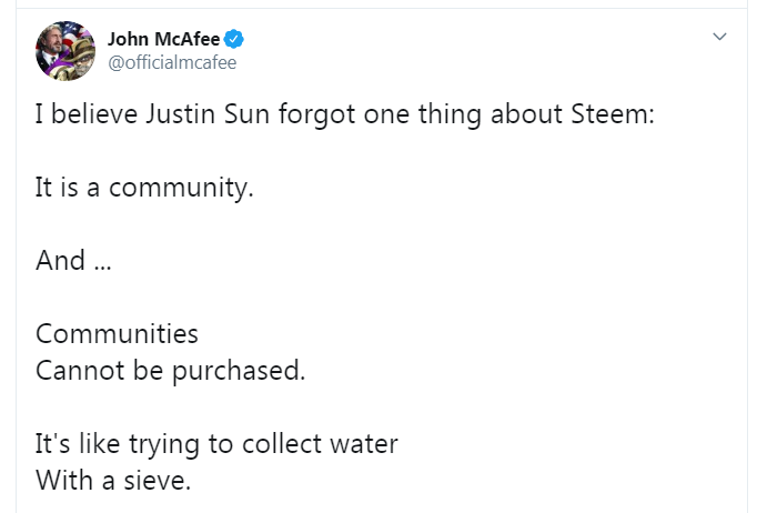 Even him with 1 million followers supported today steem in this tweet : https://twitter.com/officialmcafee/status/1235468979377811457