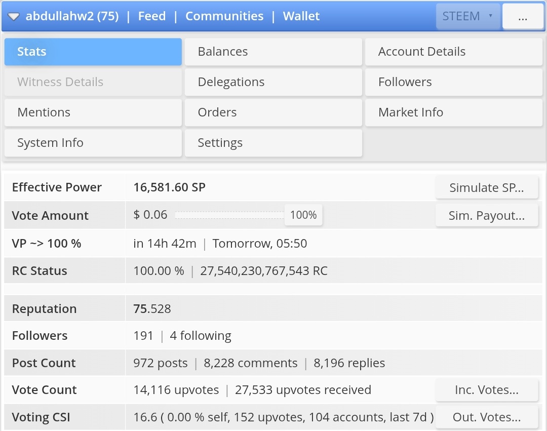 | Voting CSI | 7.4 ( 6.95 % self, 226 upvotes, 54 accounts, last 7d |