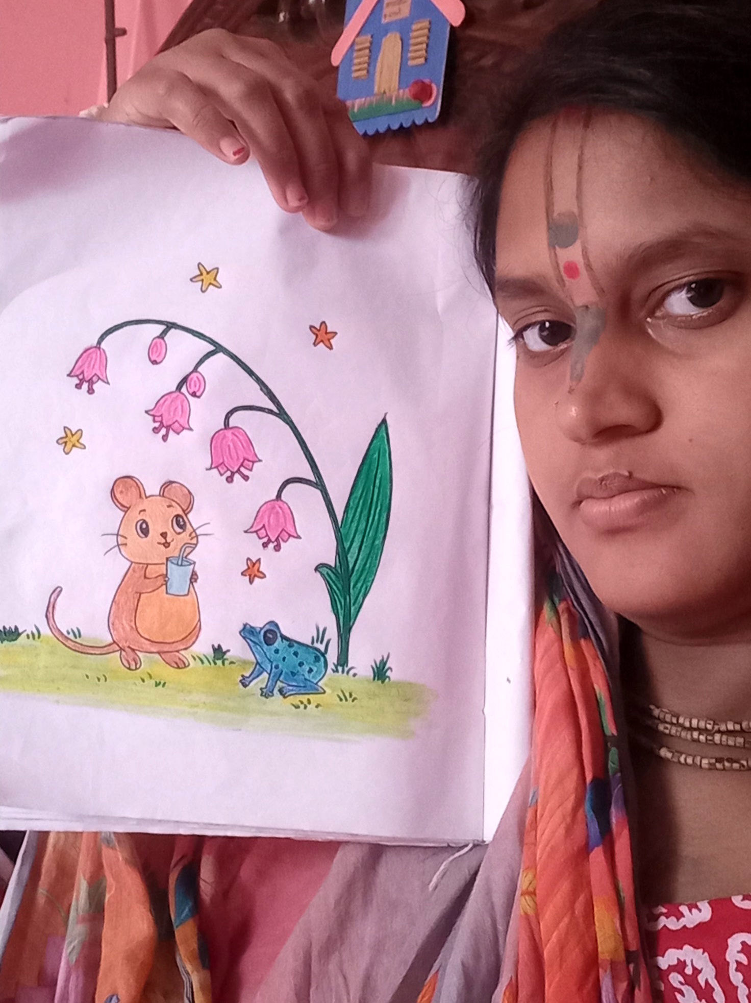 My beautiful "Rabbit anf frog" drawing and painting is completed here. I have tried to explain the detail process in the above four steps. Hope you all have understood and enjoyed this nice drawing tutorial so much...