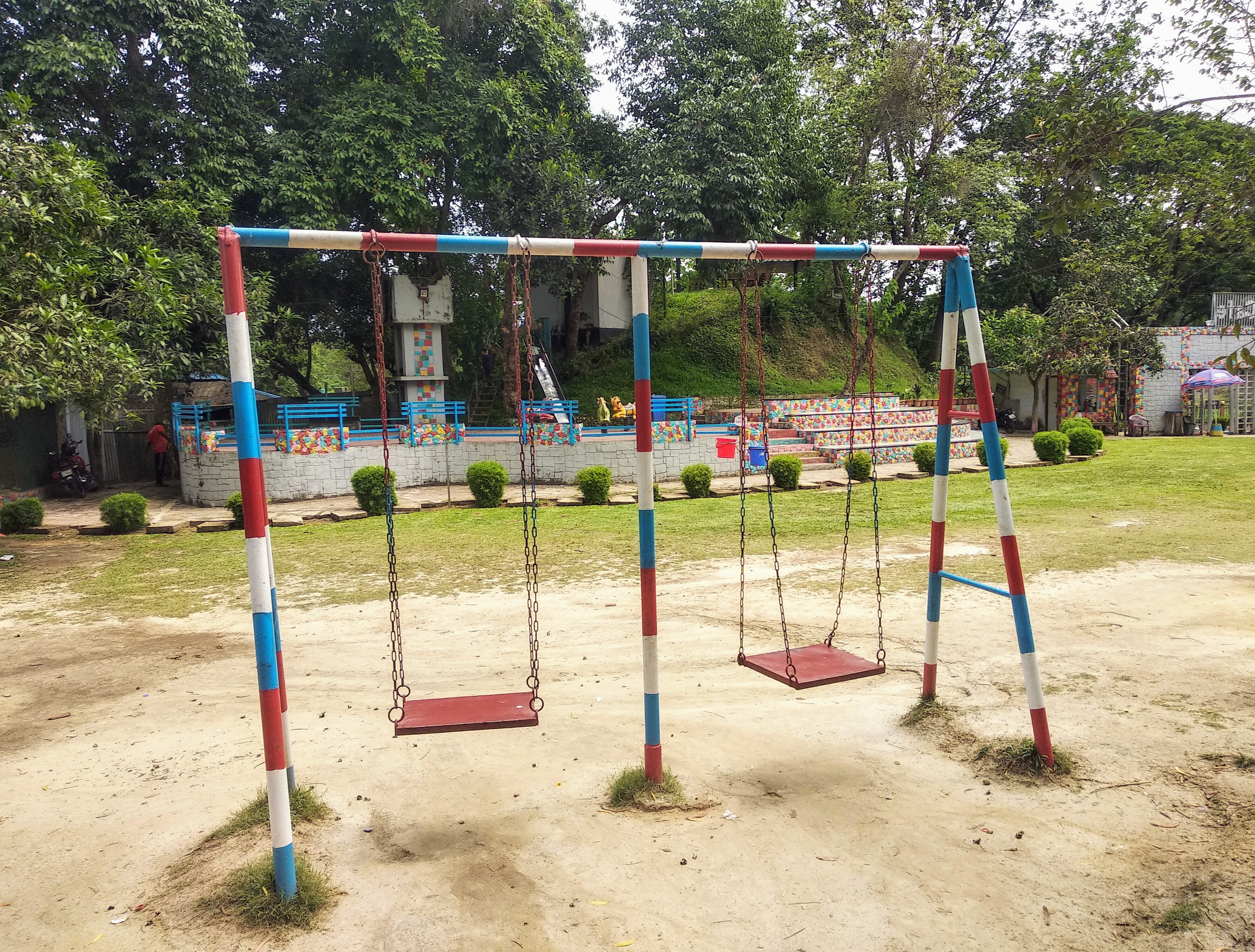 The park has various rides for children to play. Although there are some swings that adults can also sit on. Since I took my two sons, my two sons entered the park and ran to get on the rides. Since there are various large trees in the park, the children can enjoy the rides in relatively shade. On the right side of the park is a small mini-cave where some native species of birds are.