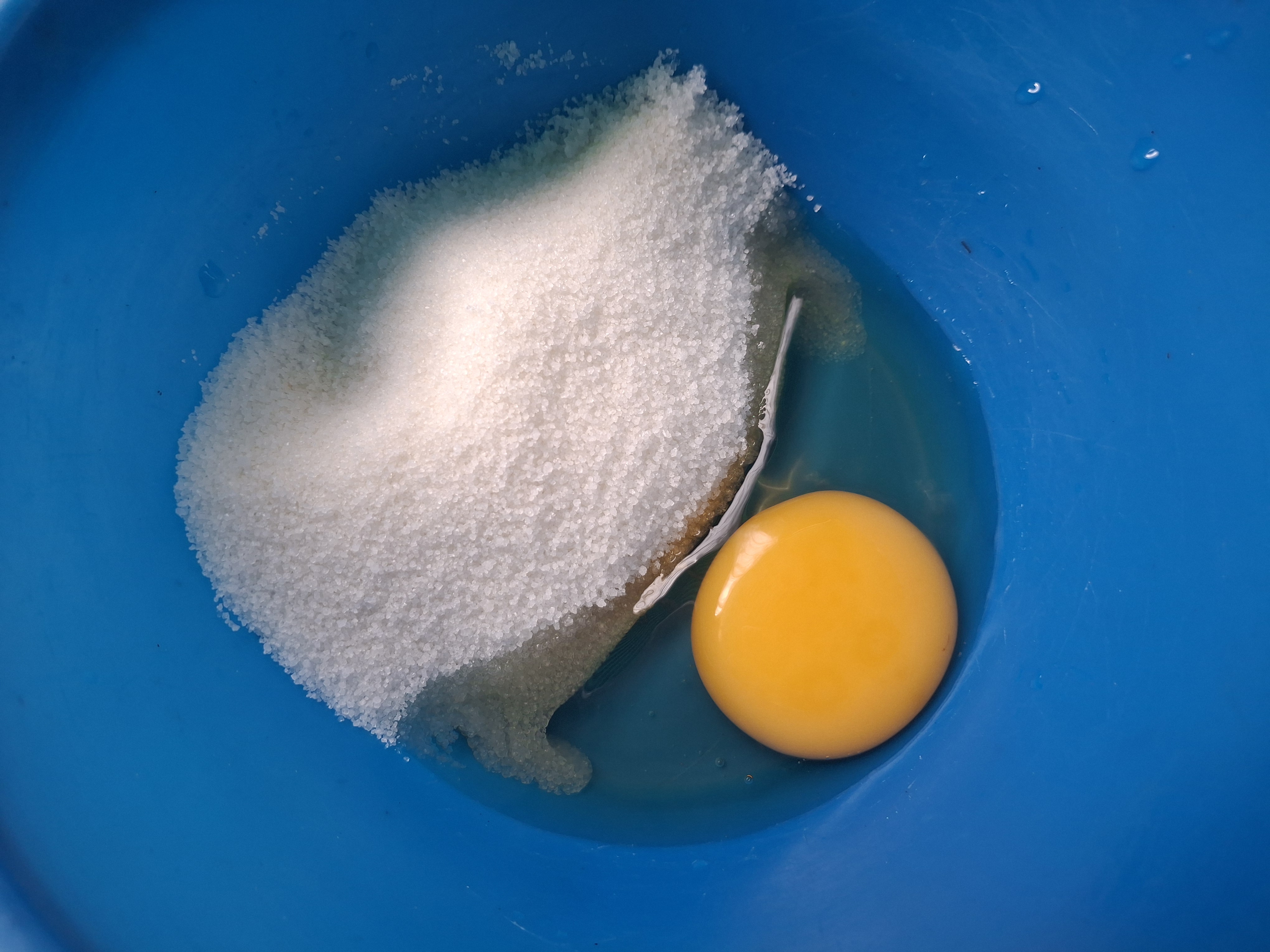 Primeramente vamos a colocar la azúcar y el huevo en una taza, esto lo vamos a mezclar.