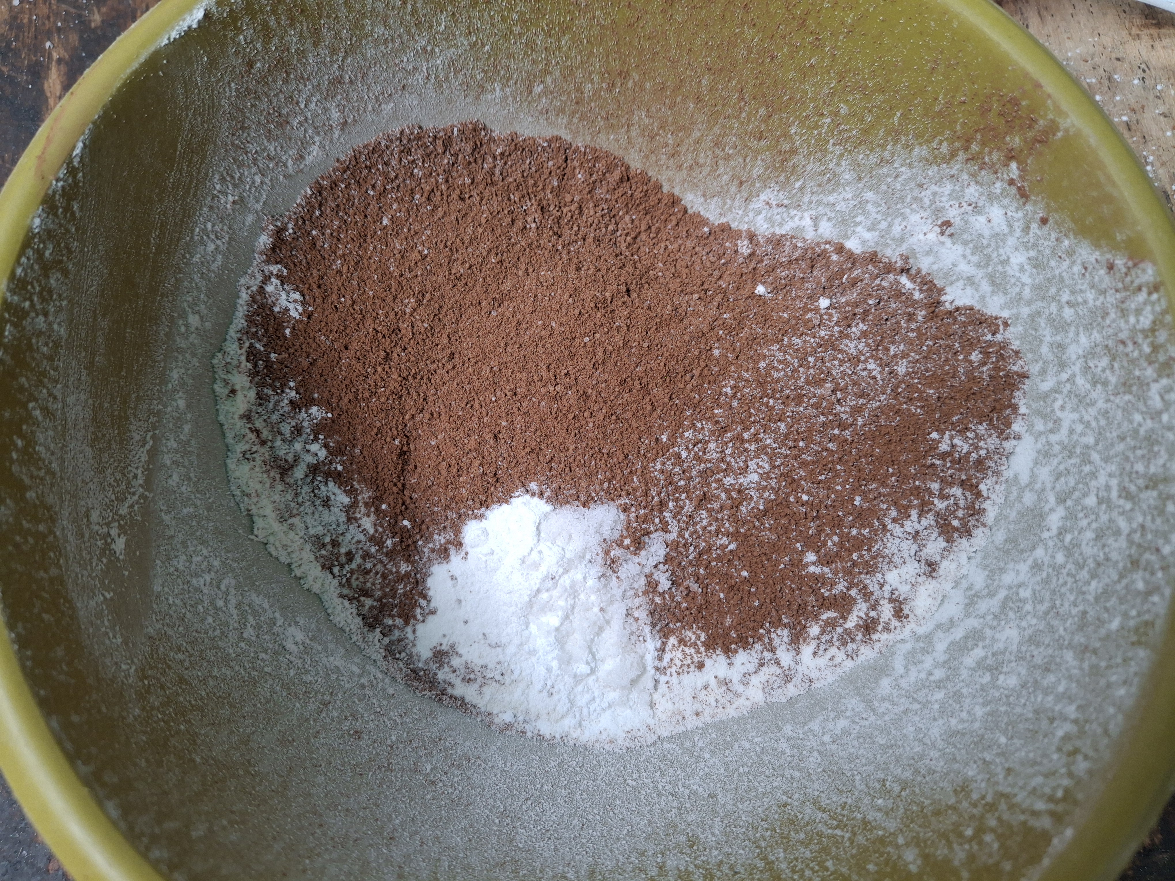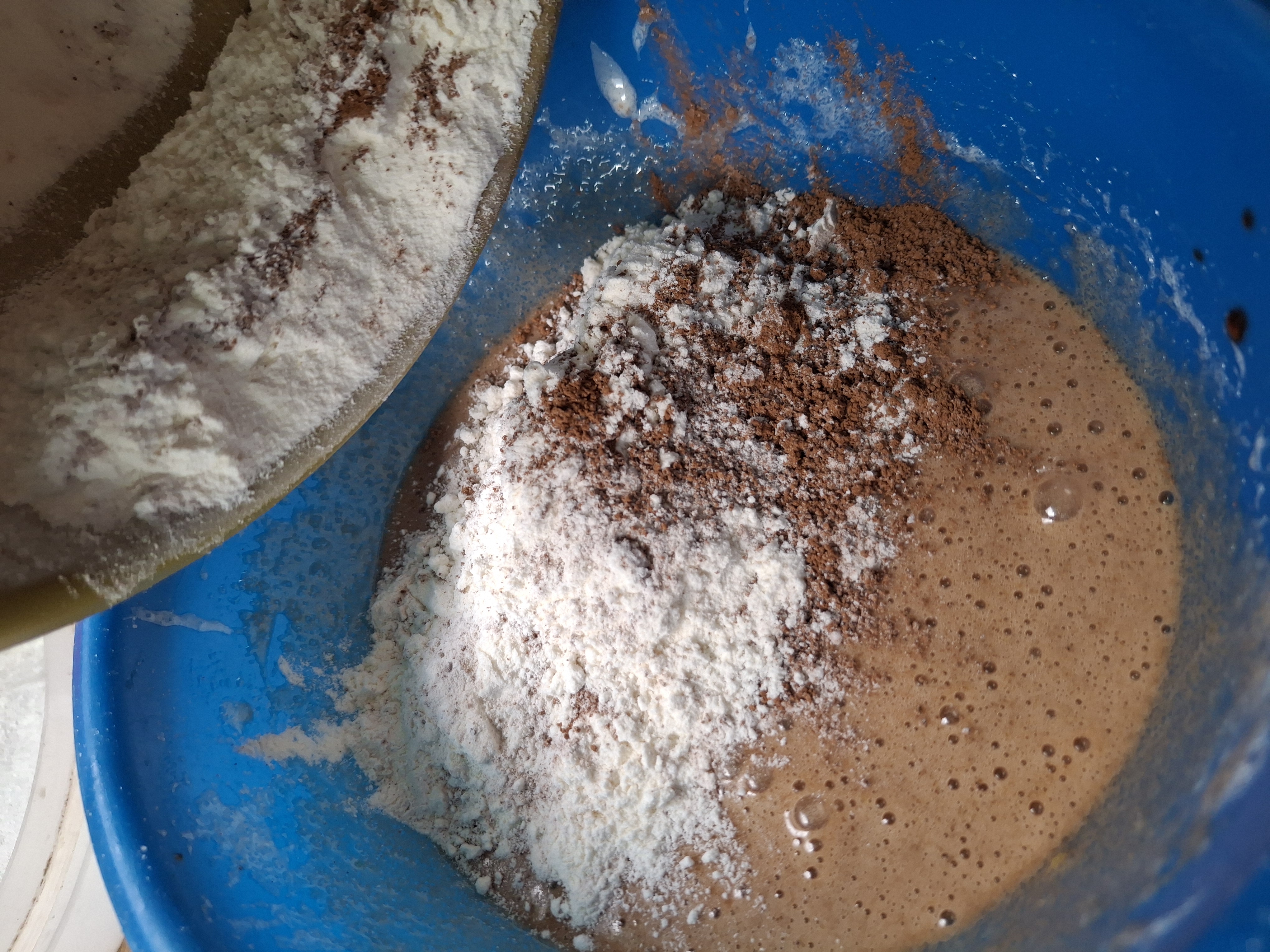 Fotos de la propiedad de @eglis. (Barquisimeto-Venezuela) El siguiente paso es mezclar los ingredientes secos la harina de trigo que vamos a cernir tambien el cacao y polvo para hornear.
