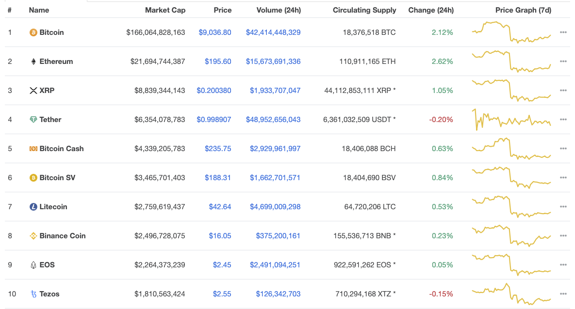 現時 BTC 重回 9K, 隨便看一下前十走勢,除了 USDT 外,基本都是BTC 怎麼走,小幣就怎麼走,市場還是十分敏感的呢。小幣們一起看著 BTC 爸爸努力吧。只要爸爸好,小幣就好。