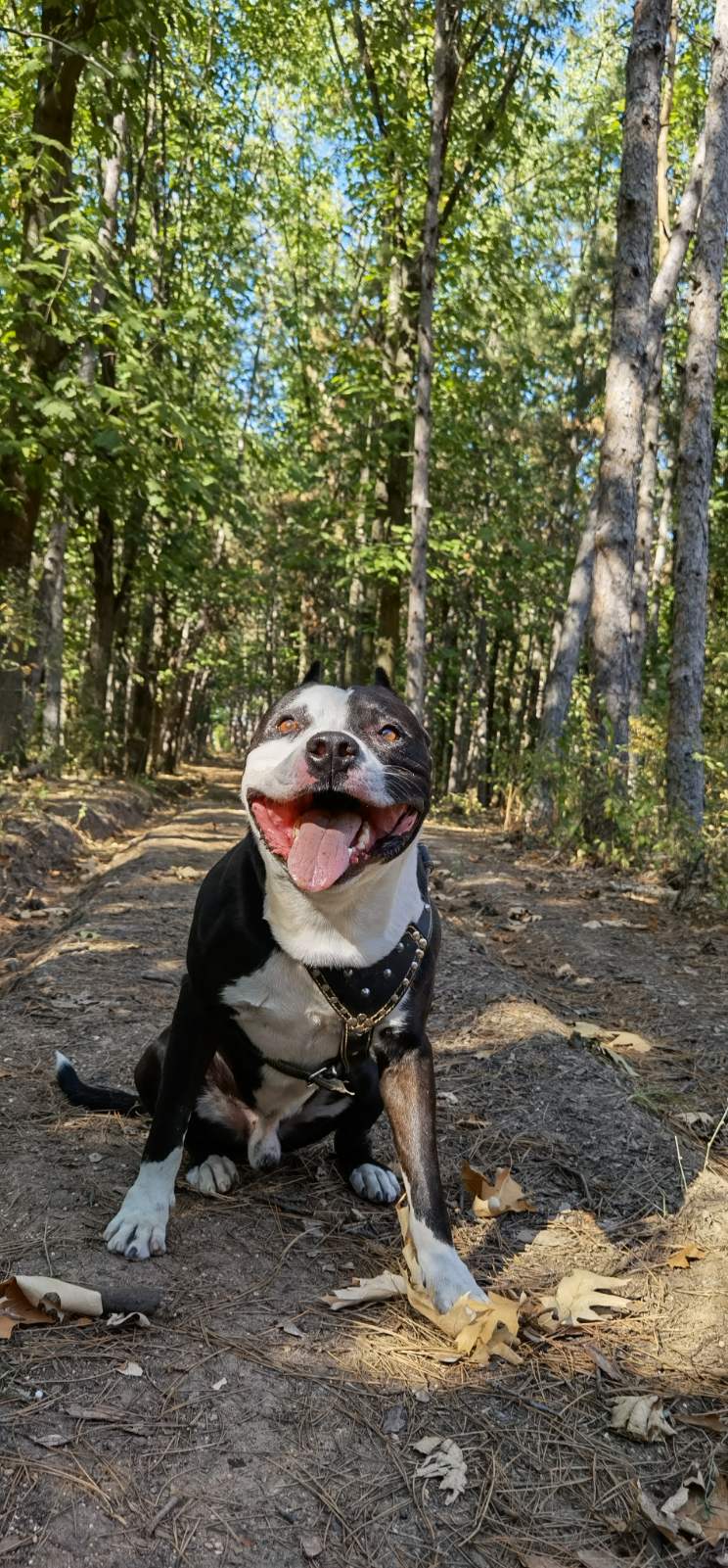 Hector is a 6 years old pit bull . He may look a little scary but he's actually the friendliest of them all. He is the alpha in our shithouse and lives with us in Svilengrad Bulgaria. He weighs 28 kg and has the build of a fighter. Yes strong and fearless he is our guardian ha ha .. He is the eldest in the family and is experienced as the alpha. Quite a stubborn character holding his own and showing it without fear. This breed is known for its fighting nature but Hector has such a big and loving heart he loves children and cherishes my two nephews with all his heart. Yes he has his pit bull character but it's in his blood when it comes to protecting us from danger I can always count on him at night. He's a big baby loves cute things and when it's time for a walk there's no one happier than him. We love to spend time in nature me him and his little sister named Hera which you will see in a moment. The forest is our most loved environment we spend most of our time there.I take my favourite book and just take their leashes off and let them run free and be happy. In my opinion, there is no happier dog than a free one that does not have a neck bracelet. That is why the forest is our choice. The dogs should be calm and in the wild they should have no contact with civilization and only the wild. As I like to spend my free time .