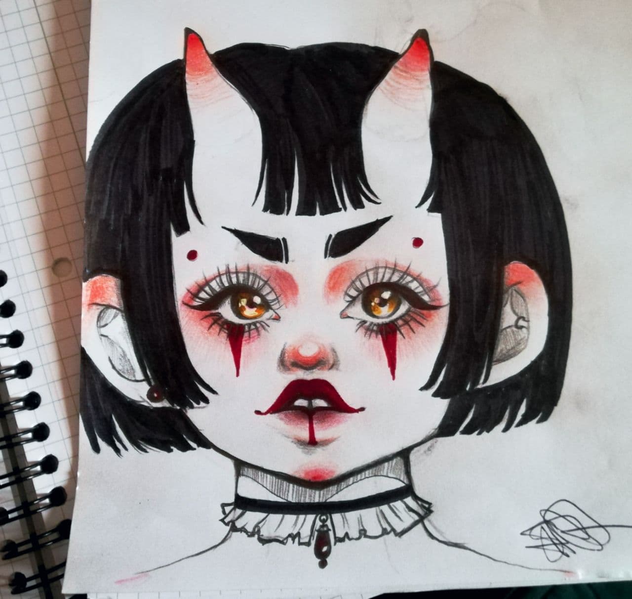 I drew her like, two weeks ago, and she developed from a pencil sketch into a slightly more colored version that I did with colored pencils and pens!