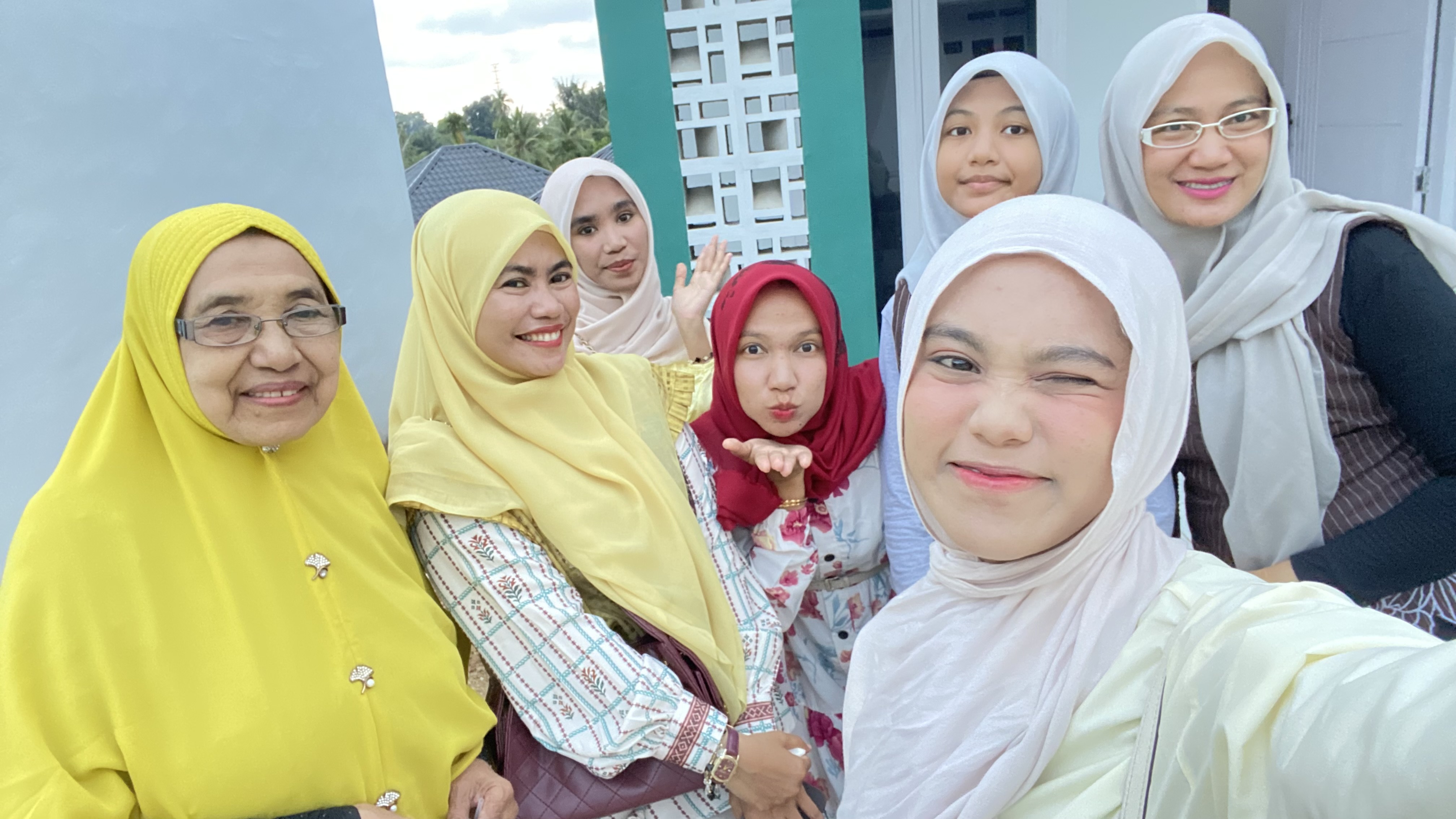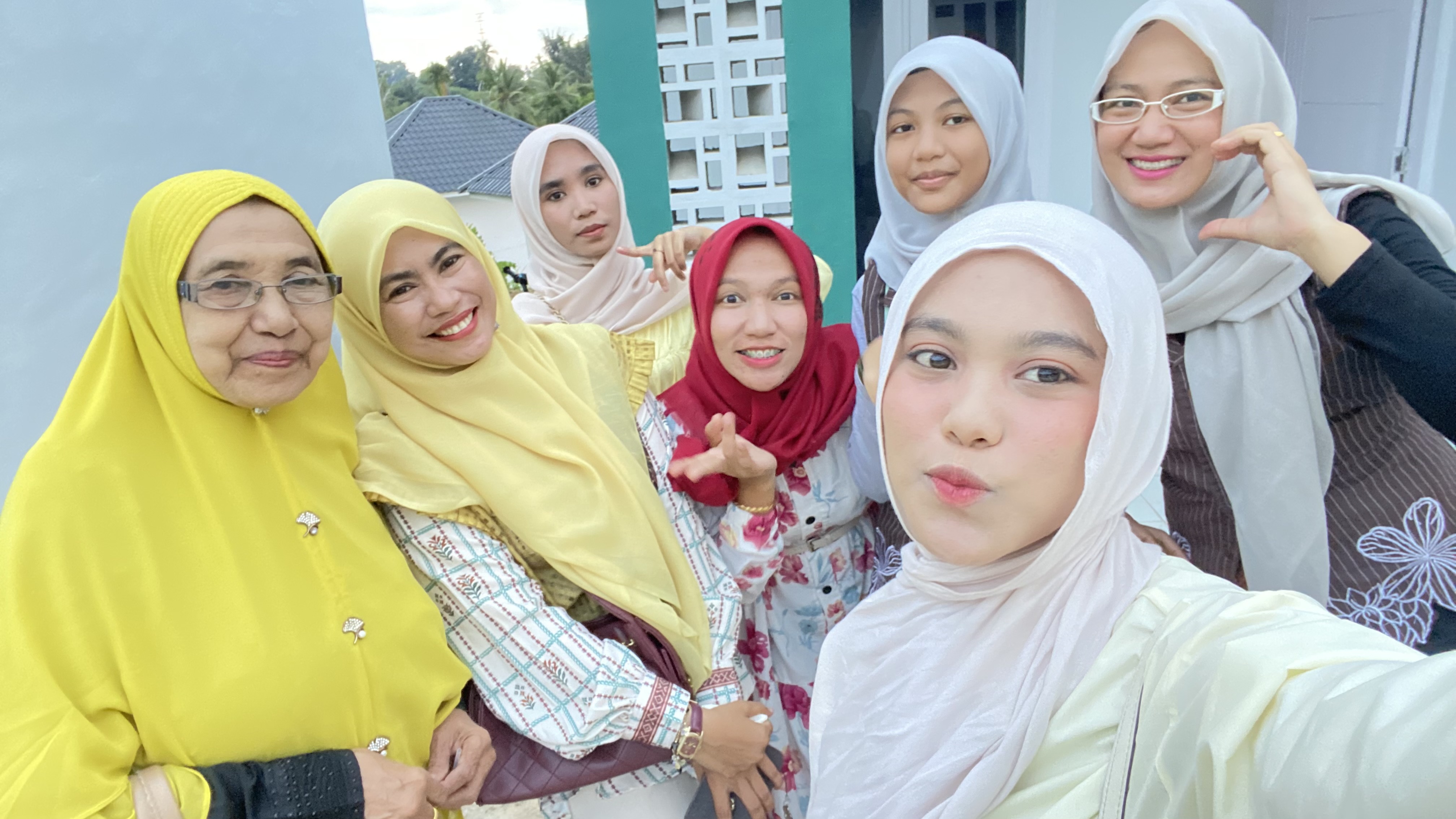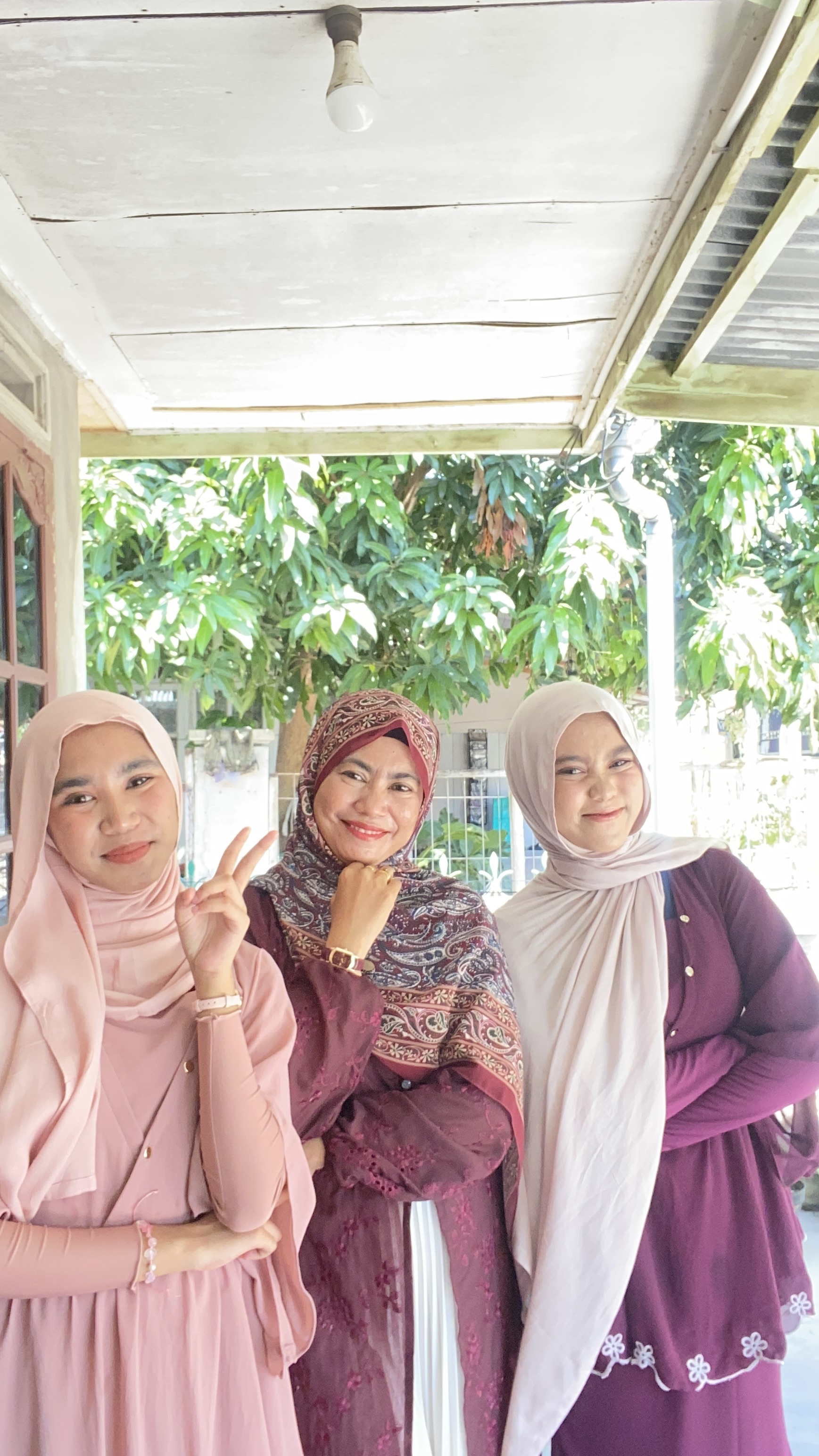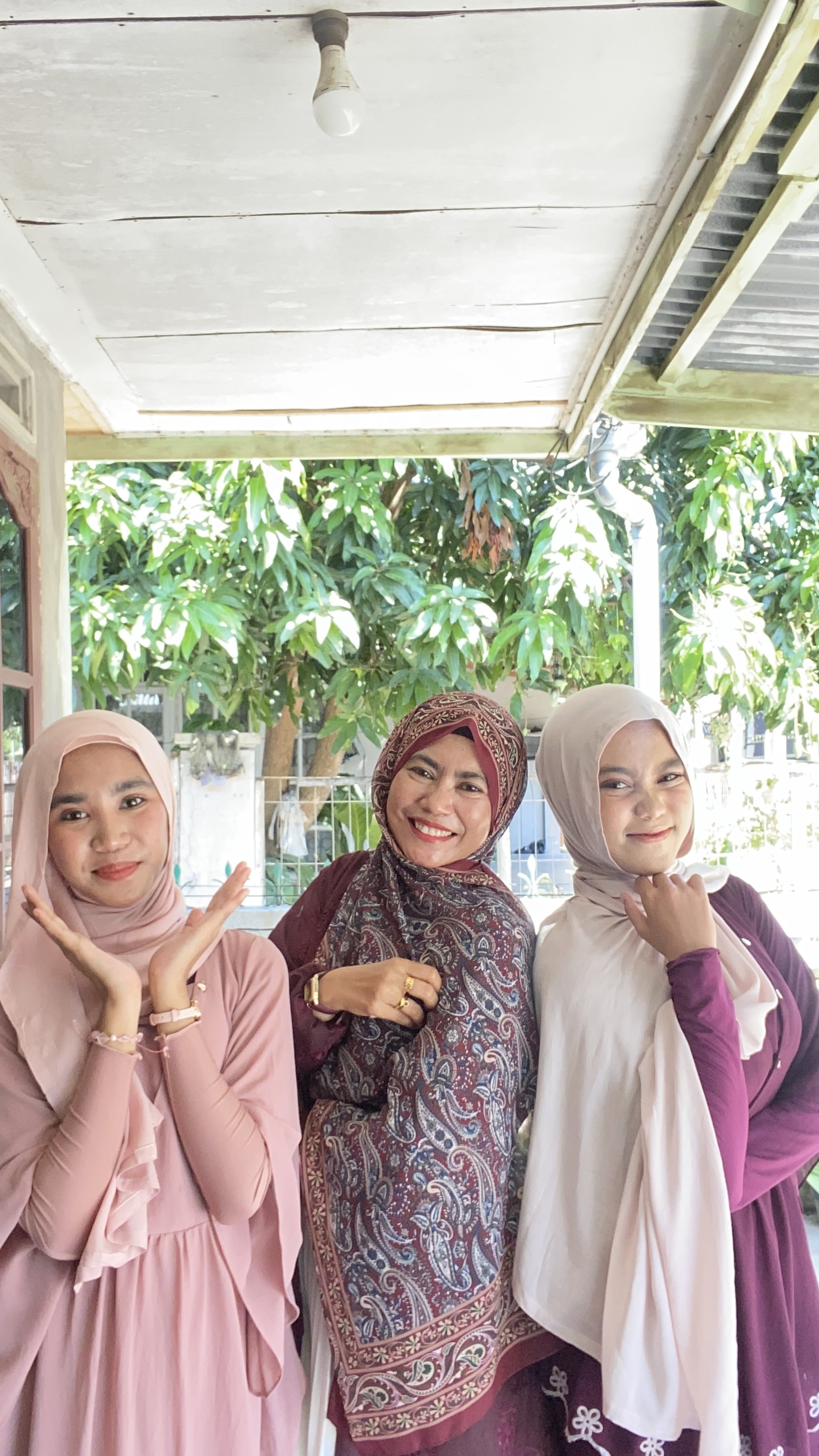 Seperti biasa aku bersama kedua putriku melakukan sesi foto bersama kami berfoto di teras rumah ibunda. Usai melakukan sesi foro dan seru-seruan, kedua putriku pamit untuk menemui ayah dan neneknya serra sepupunya.