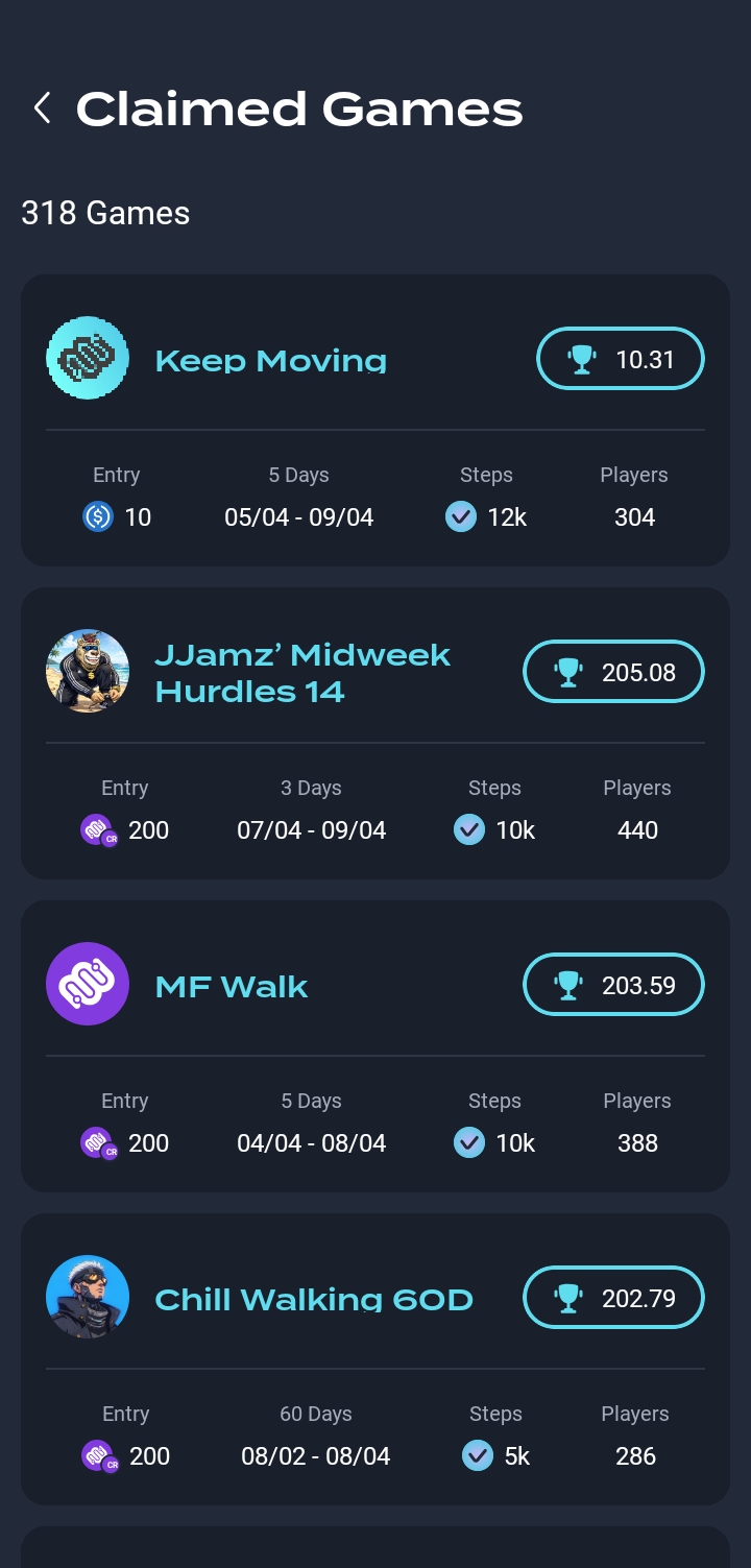 | Keep Moving | 5์ผ | 12,000๋ณด | 10 USDC | +0.31 | 3.10% |