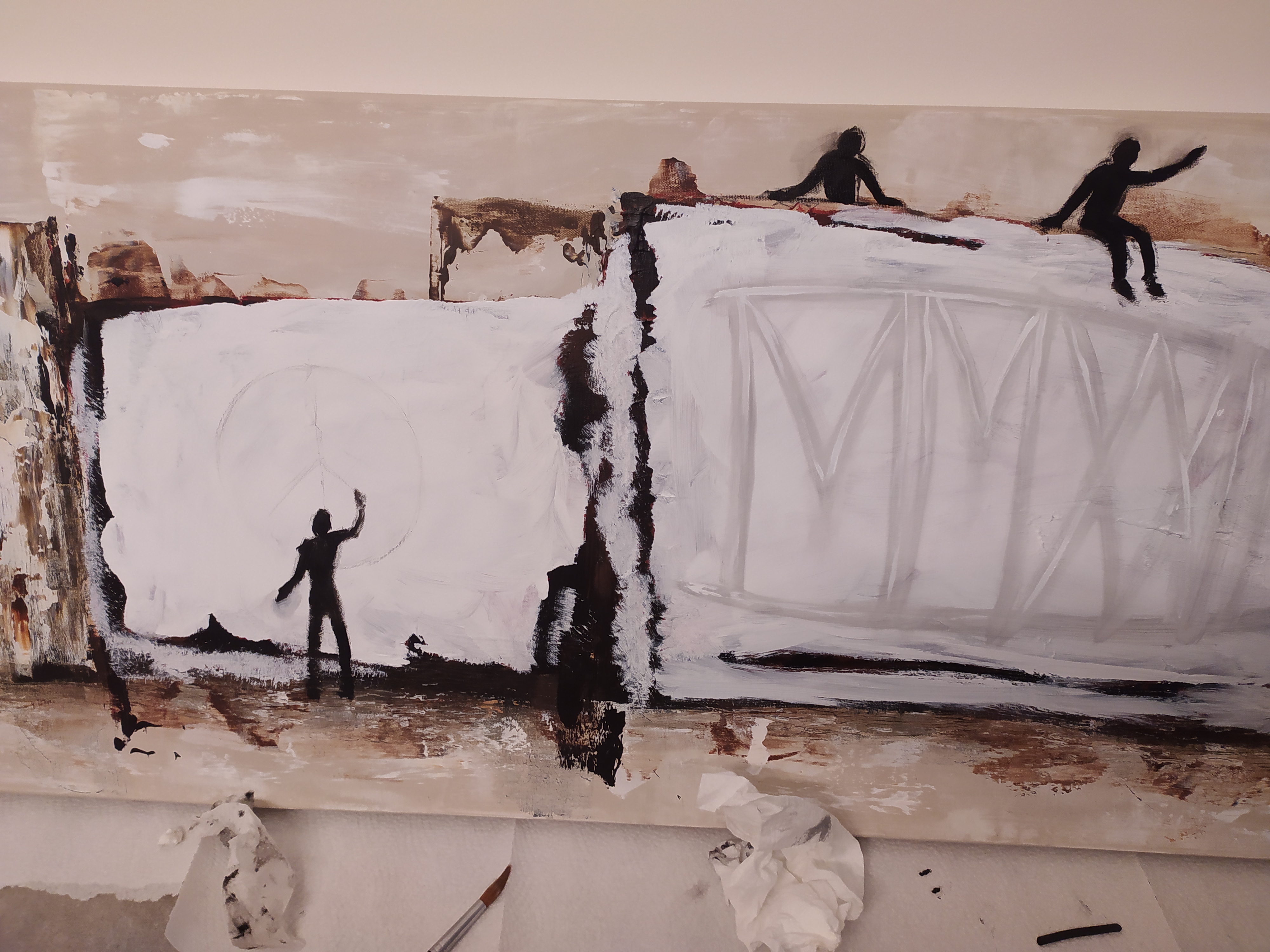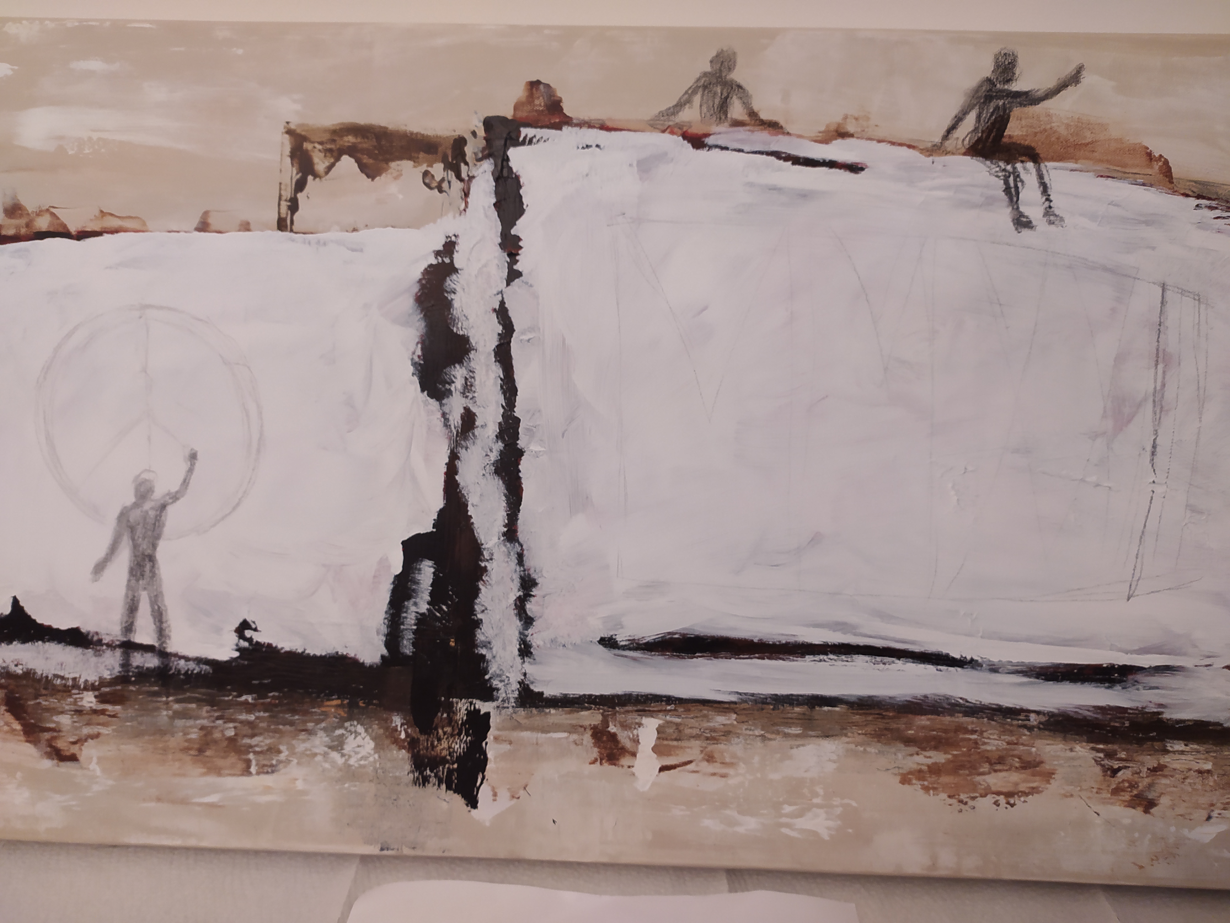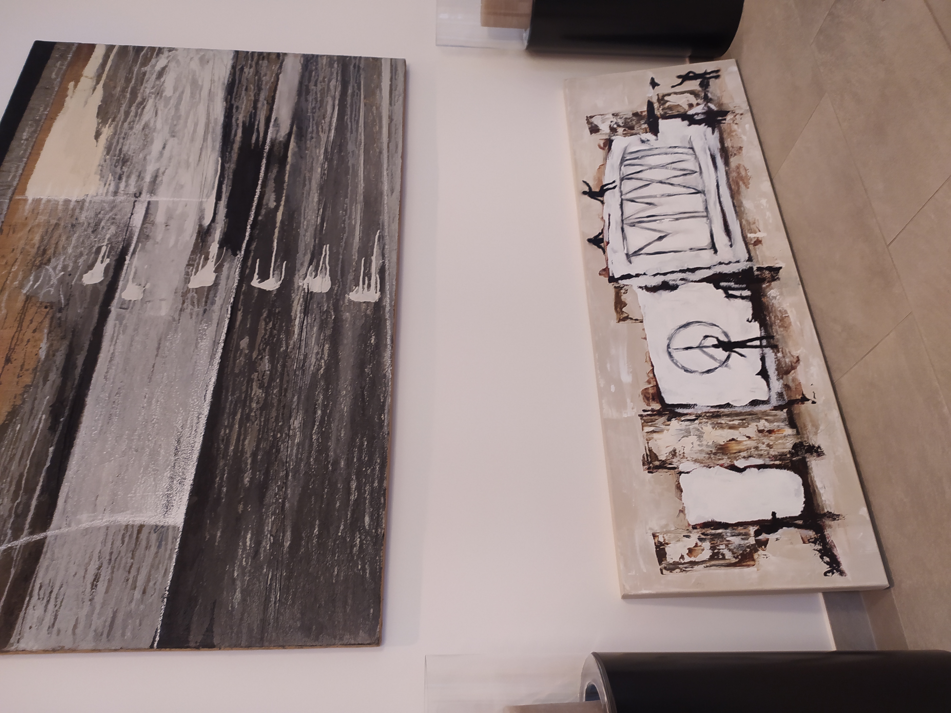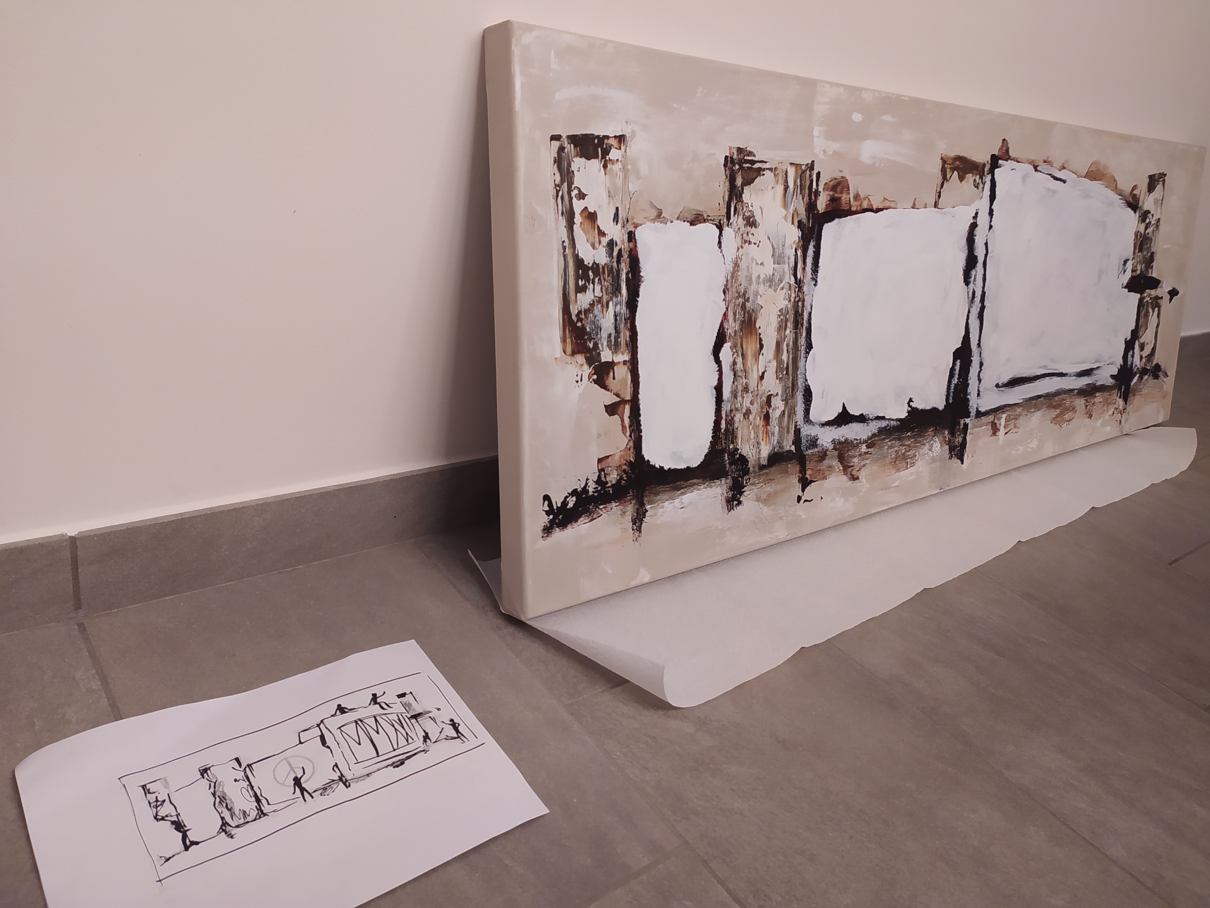 But knowing that otherwise she would have thrown them away I started to save the canvases, and knowing her style I drew some sketches before starting.
