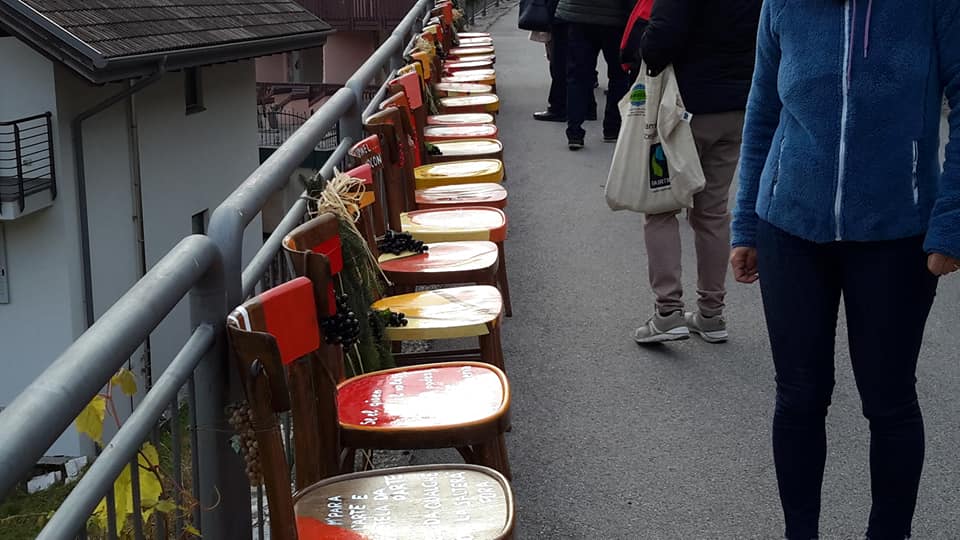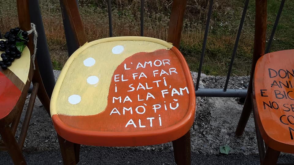poi c'era tutta una fila di sedie con delle frasi scritte sopra che sinceramente non so se era un gioco o era una specie di arte contemporanea sinceramente non l'ho tanto ho capito.