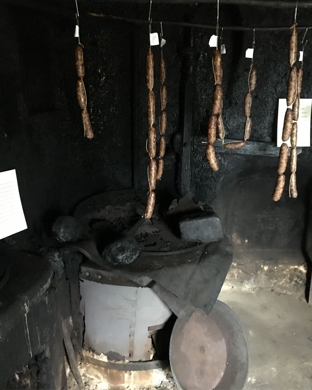 in piazza non c'è nessuno che la preparava Ho trovato solo un posto dove la stavano affumicando e ho scattato una foto che non è venuta benissimo però almeno fa capire come è fatto questo salume.