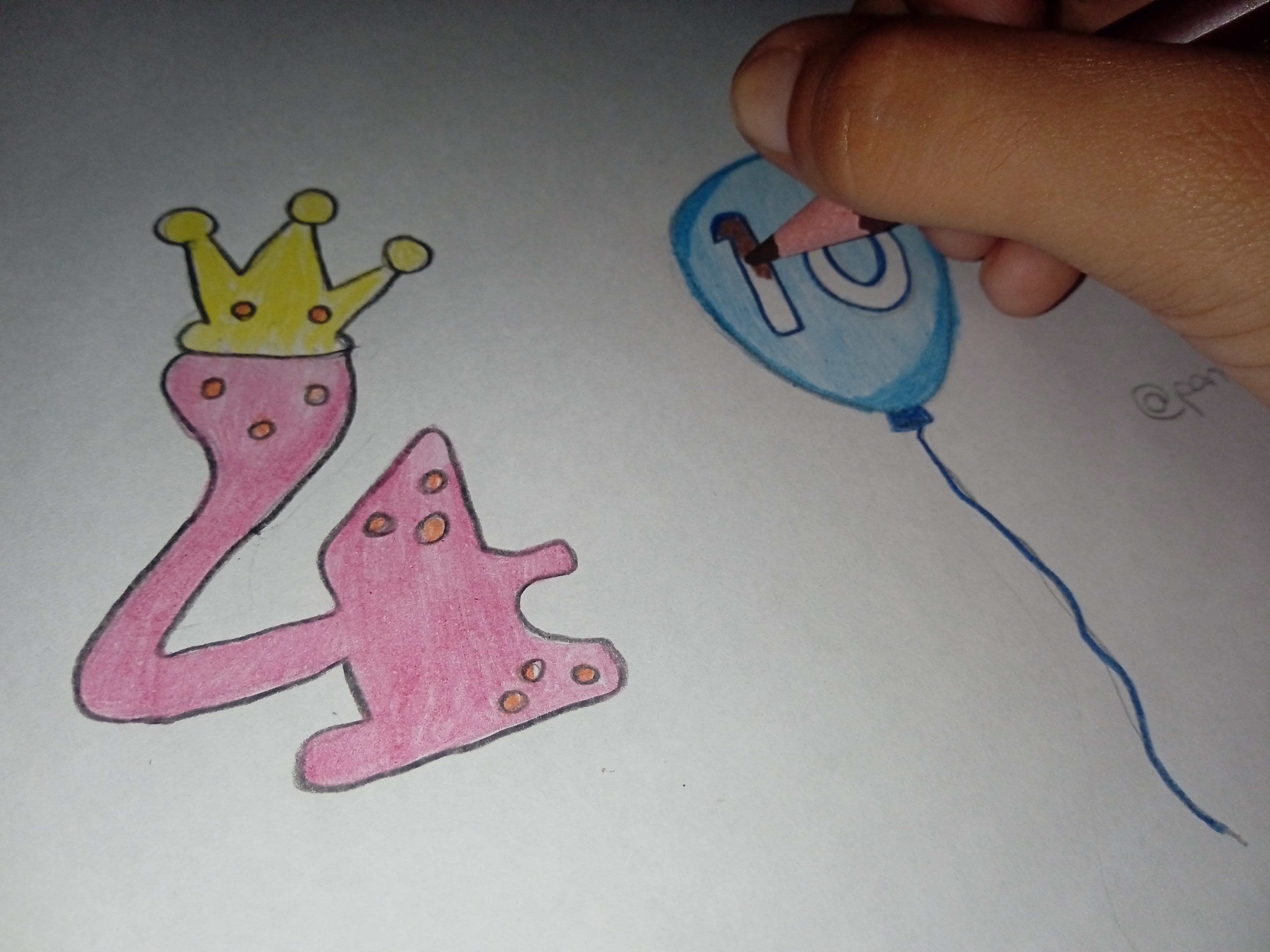 Cómo puede ver en mi tabla, uno de los números elegidos es el número 4 y es por el mes del cumpleaños de mi mamá que por cierto faltan pocos días para celebrarlo, luego dibuje el número 10 por ser el día que hice mi primera participación en honor al cuatro, ya que el 4 de abril fue nombrado día del cuatro.