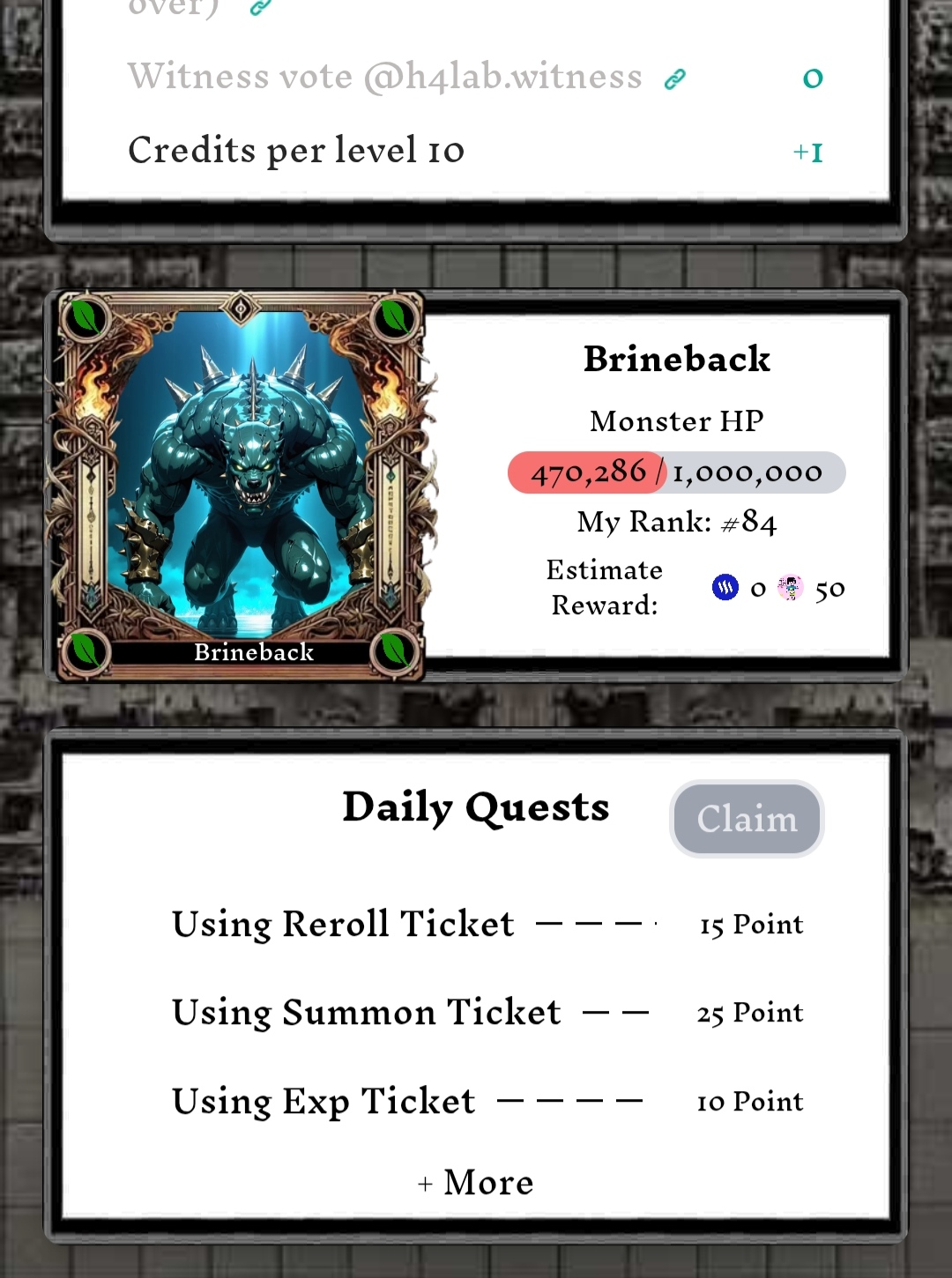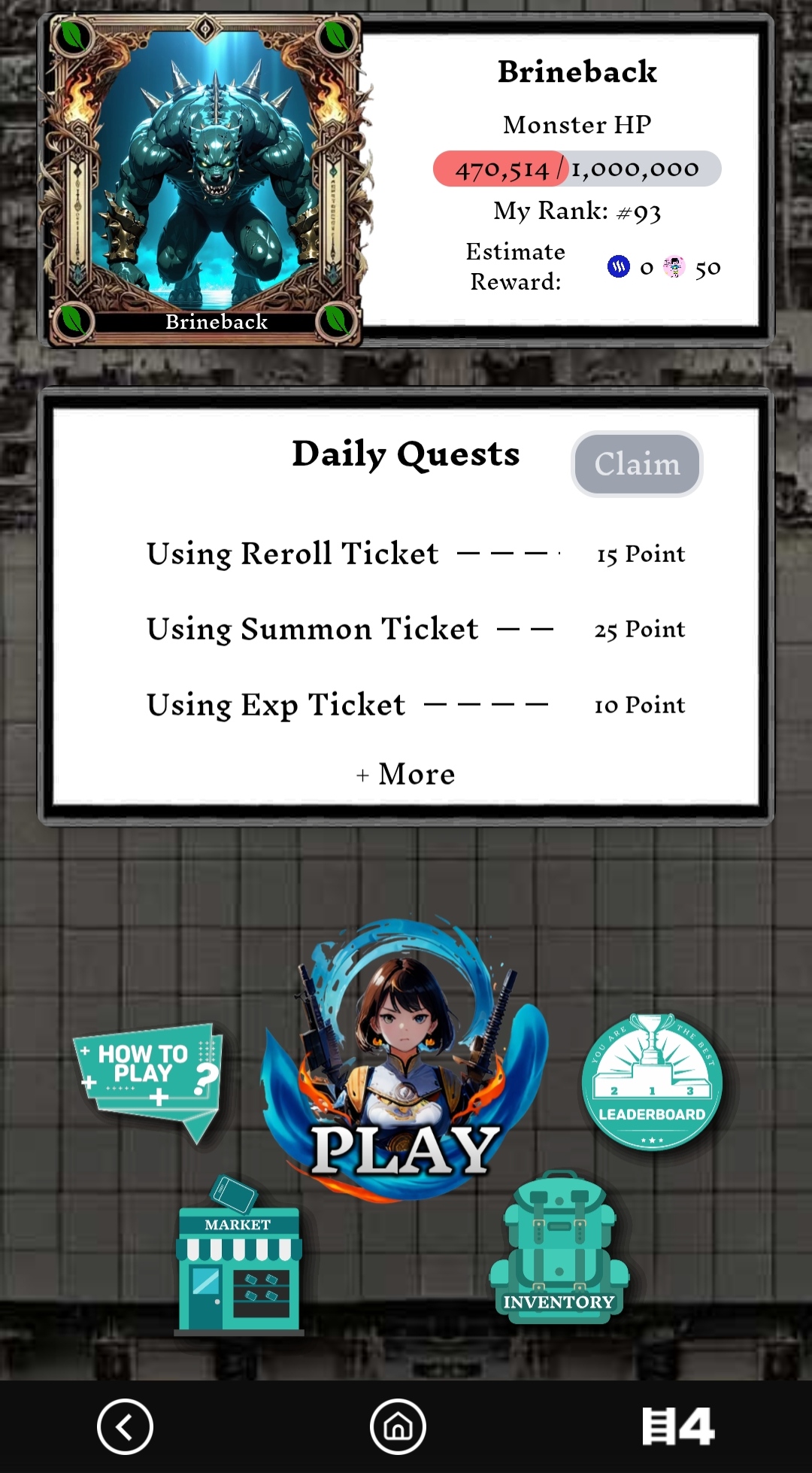 Tras entrar en este juego, vi varios programas y observé que hay una tabla de clasificación a la derecha y un mercado a la izquierda. También hay información más detallada sobre el juego y arriba se encuentra el perfil, que incluye niveles y créditos. En la partida de hoy, conseguí dos créditos, ya que se otorgan dos créditos al día. Con esos dos créditos, puedes atacar dos veces.