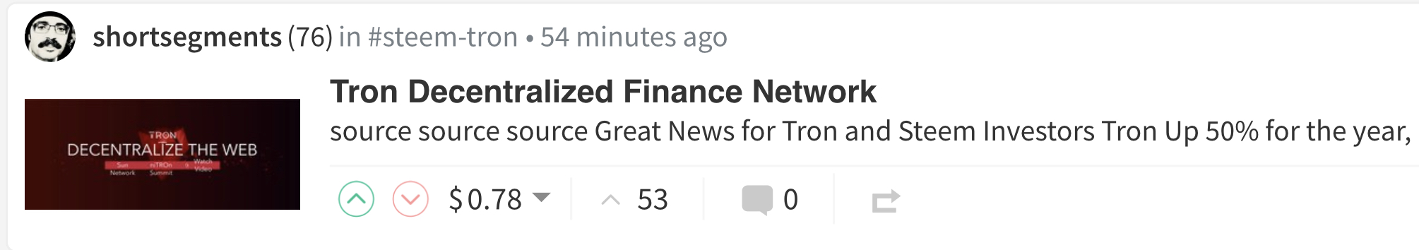 The Tron Decentralized Network has made tremendous progress recently and I am grateful for the chance to participate!