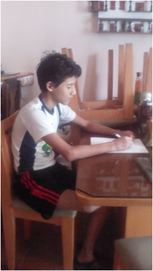 Mi hijo haciendo sus trabajos para el liceo