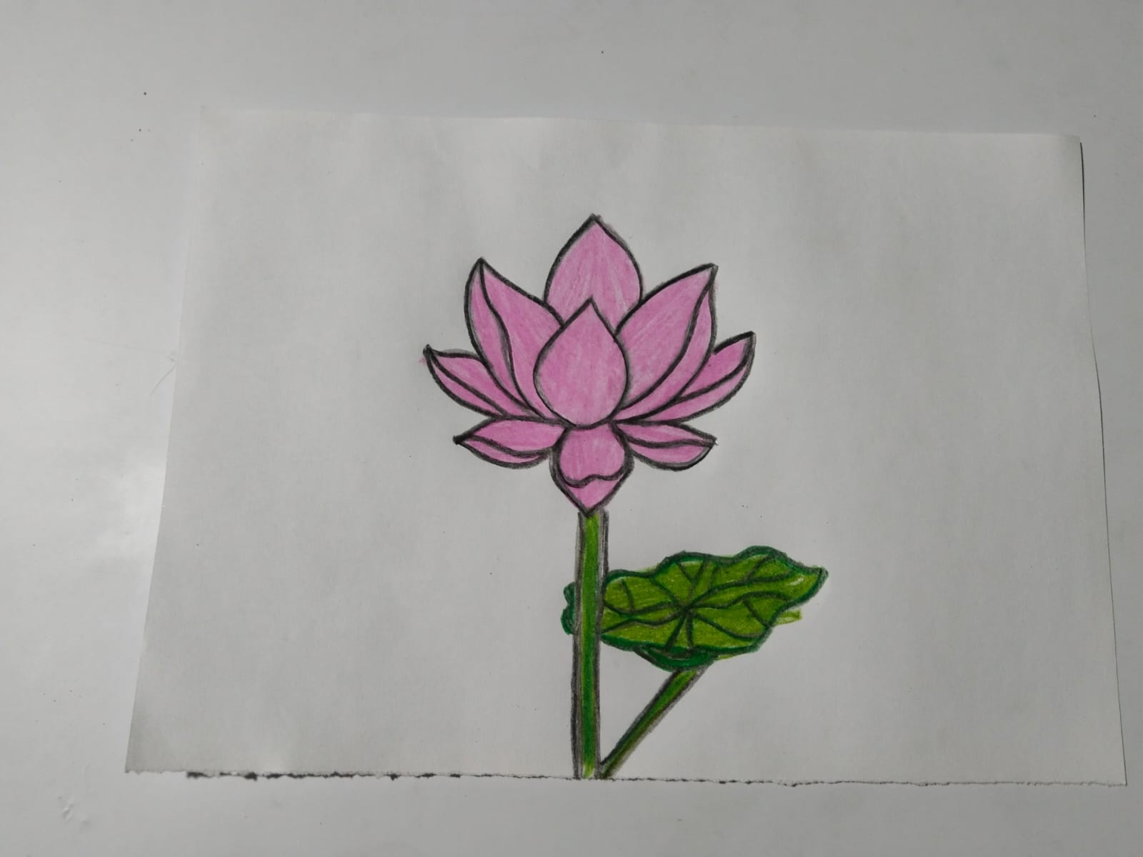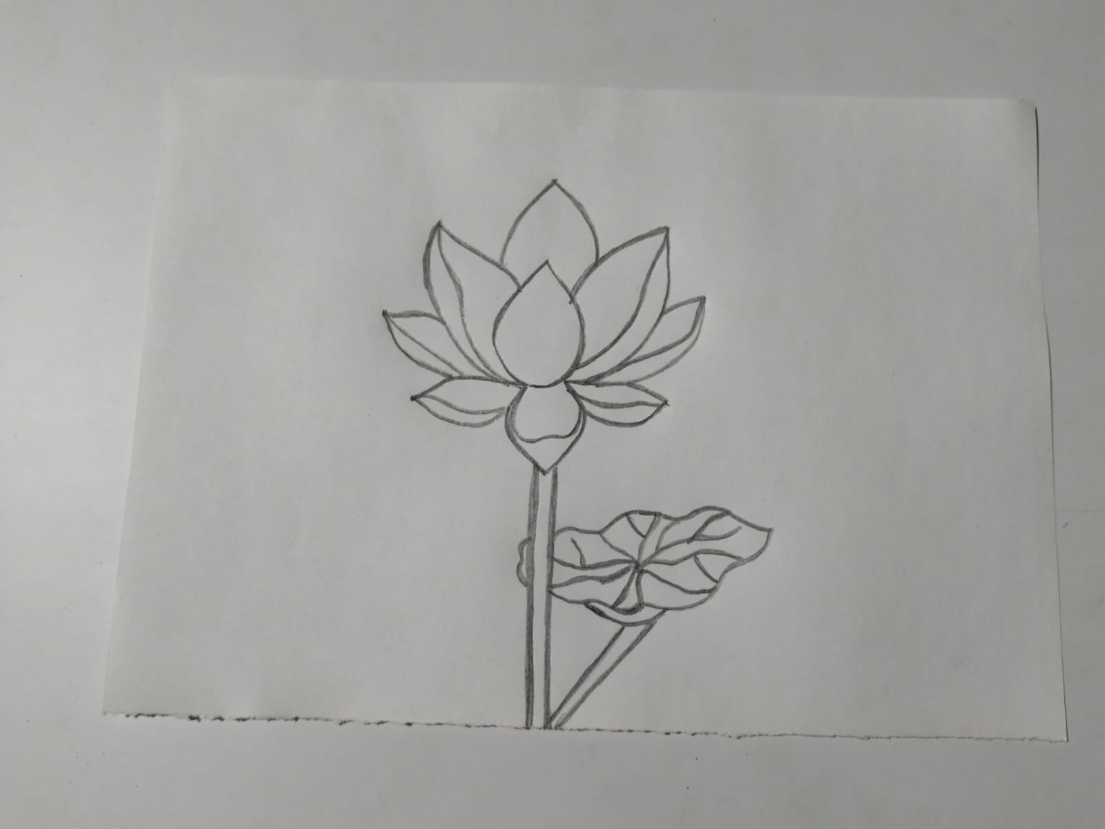 - Then I was ready to draw a leaf like this on the stem of the lotus flower I had drawn. So I drew the leaf of this lotus flower like this.