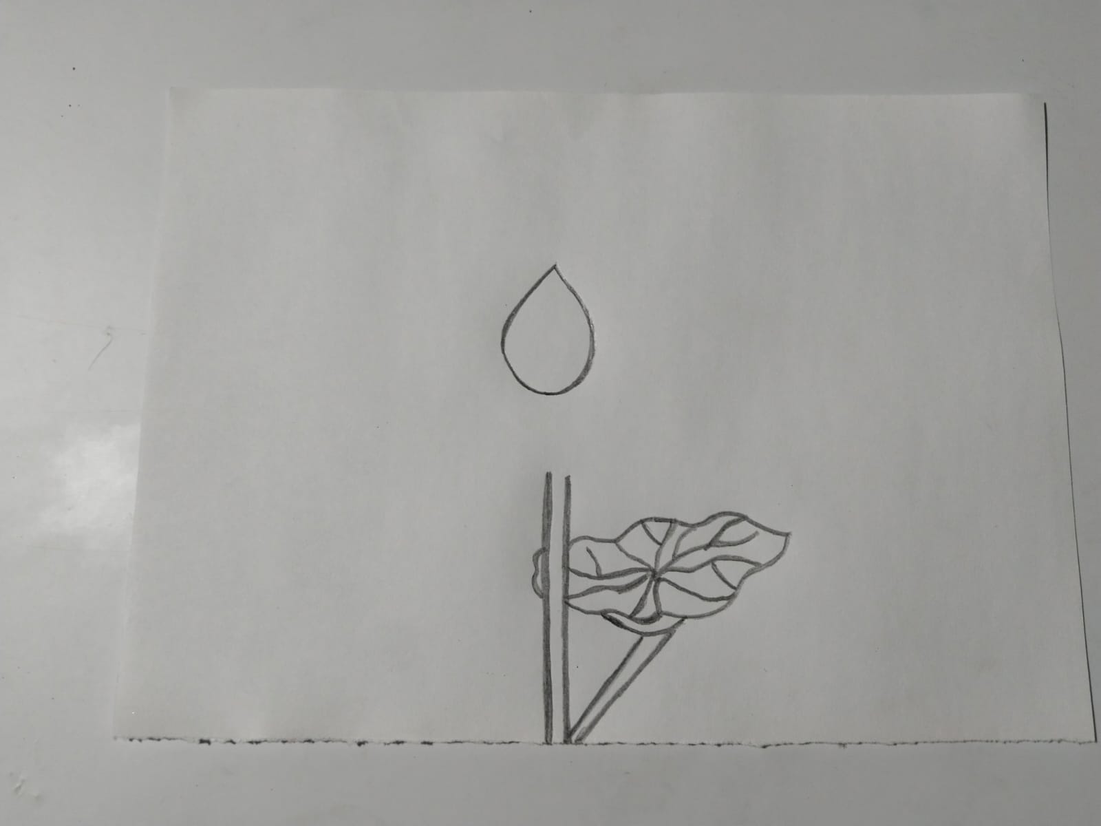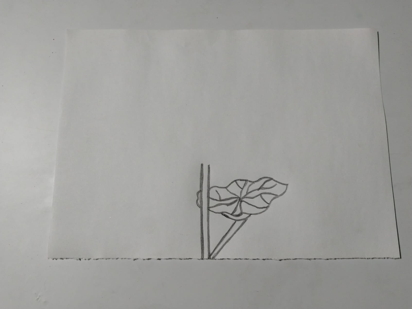 - First I took an A4 sheet of paper. Then I got ready to draw the picture. As the first step in drawing the picture, I drew the stem part of the lotus flower.