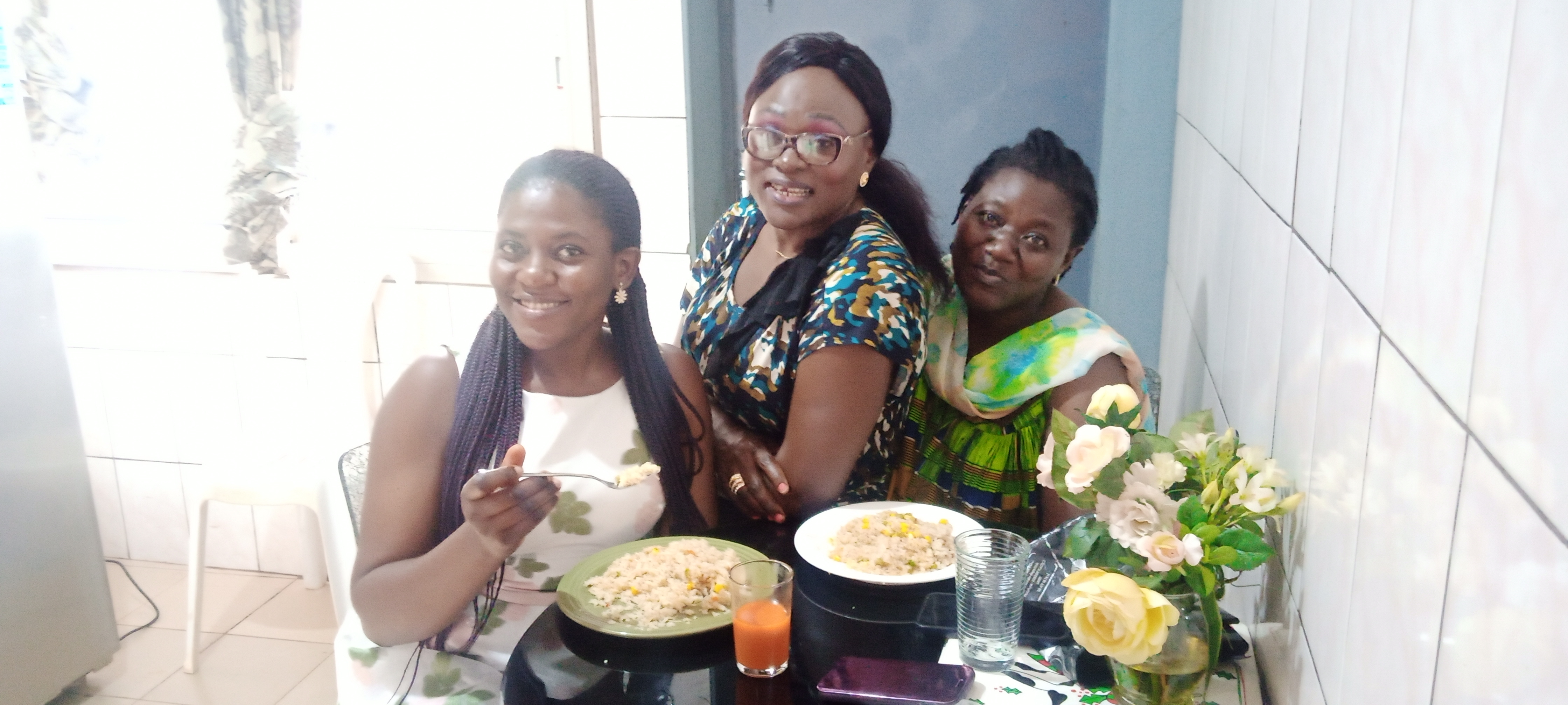Eating and drinking that was how the celebration ended with laughter and family bonding . I came home with my family and and we prepared for the night then watched TV for a while then everyone went to bed happy.
