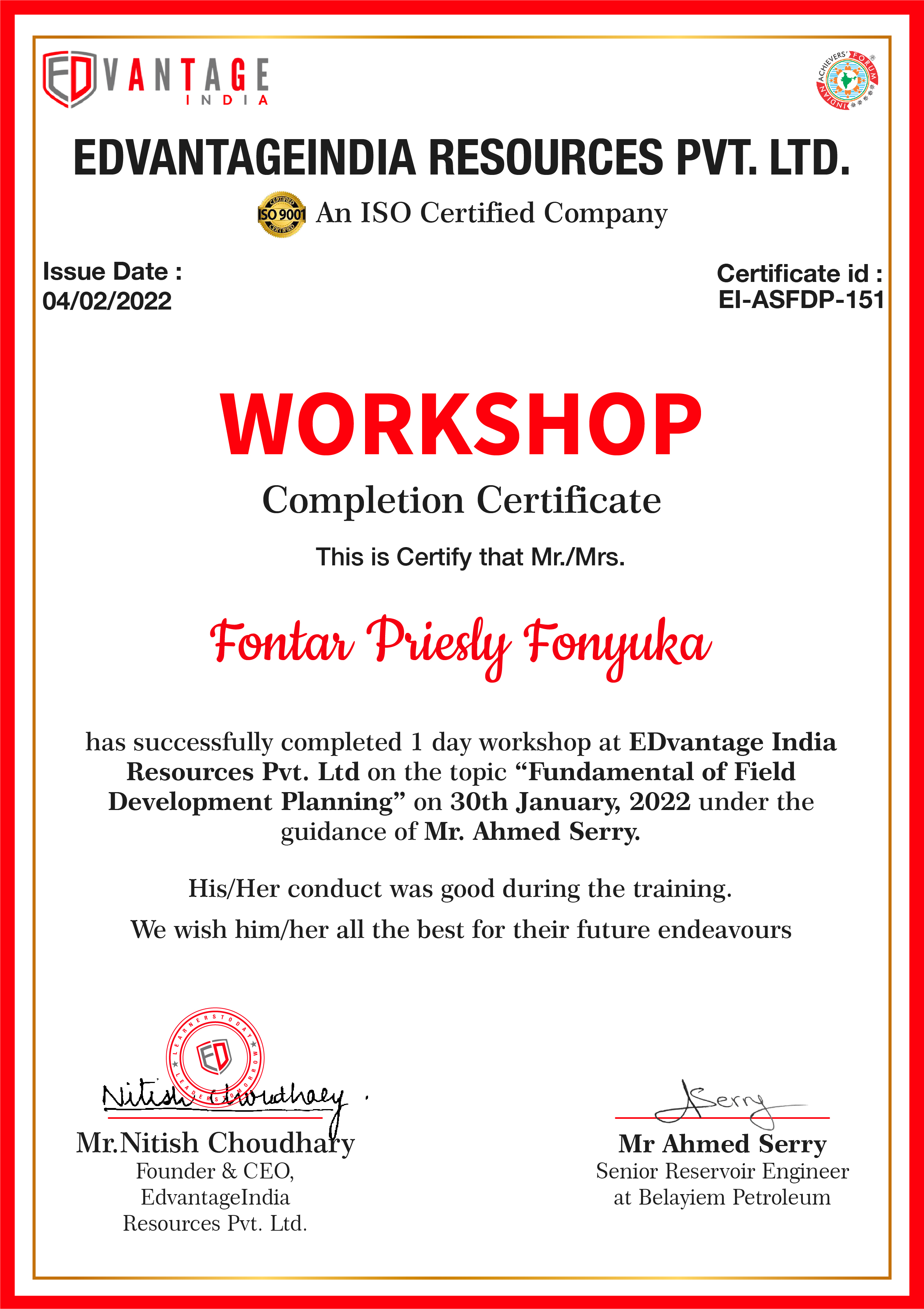 We had a 1 day workshop session on fundermentals of field development and ill say at the end it was all good and God was glorified .