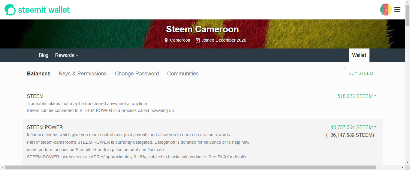 Today, Steem Cameroon powers up her account by 500 Steem moving her SP from 10,757.564 Steem to 11,757.568 as you can see in the images below: