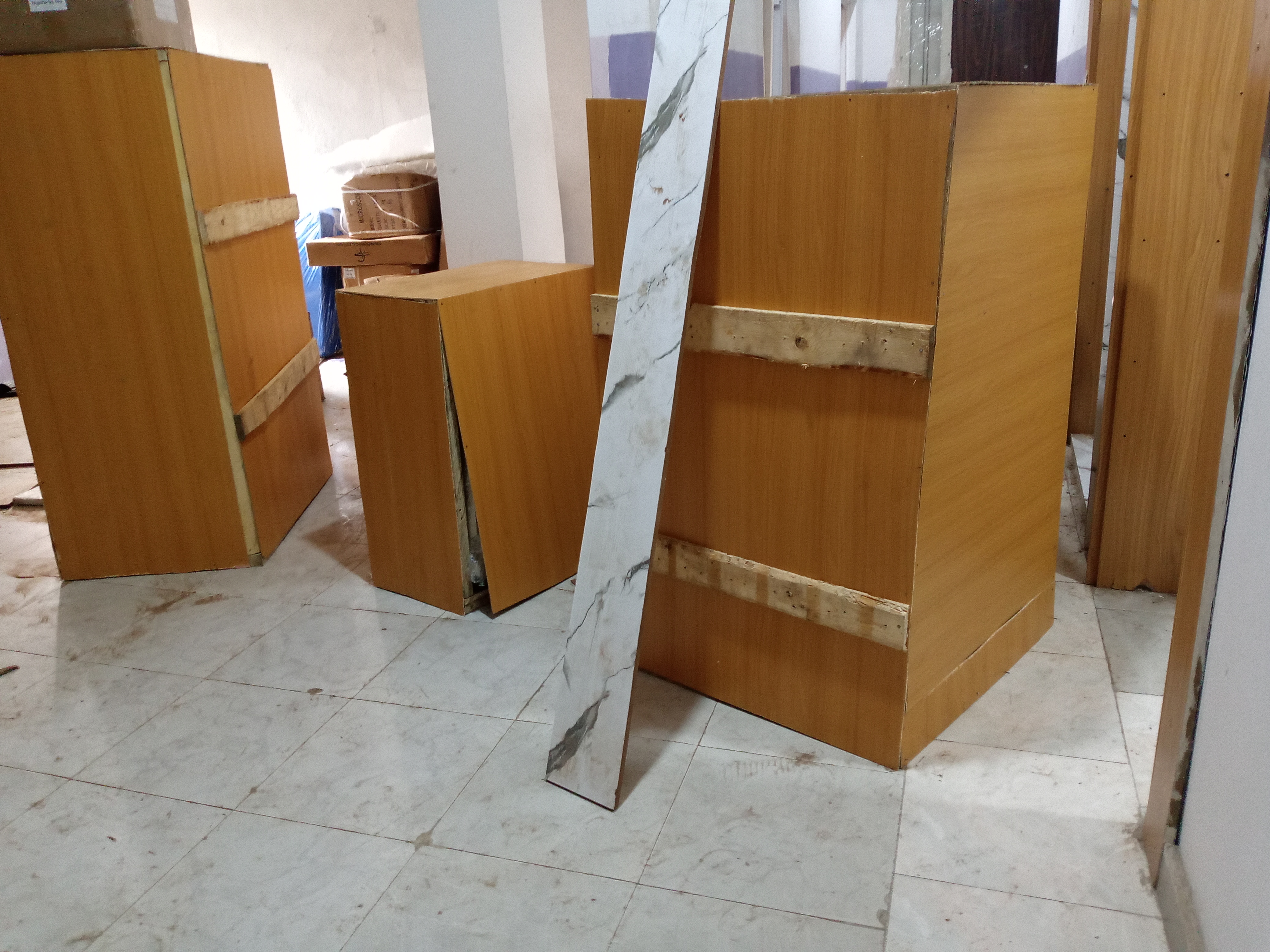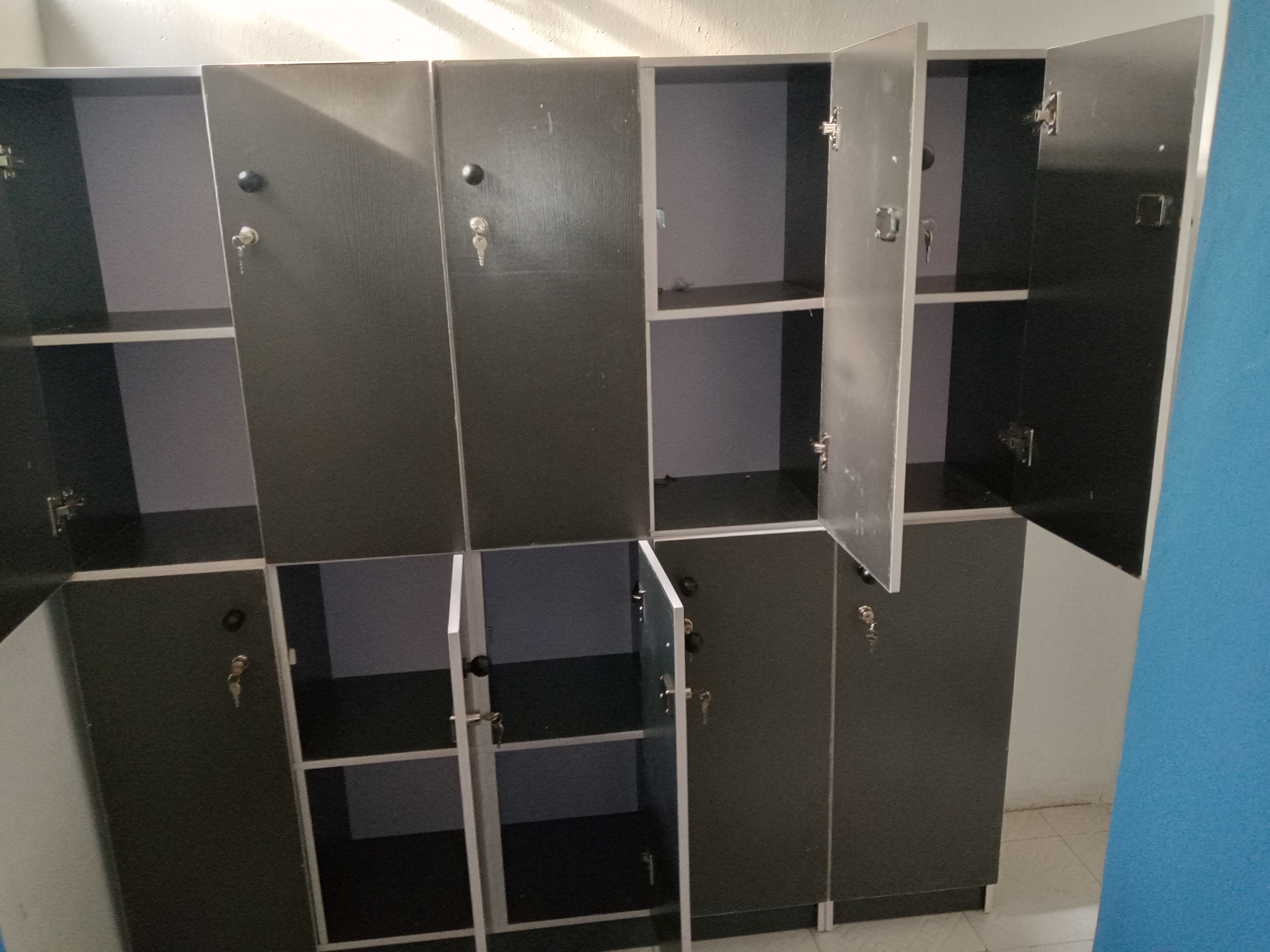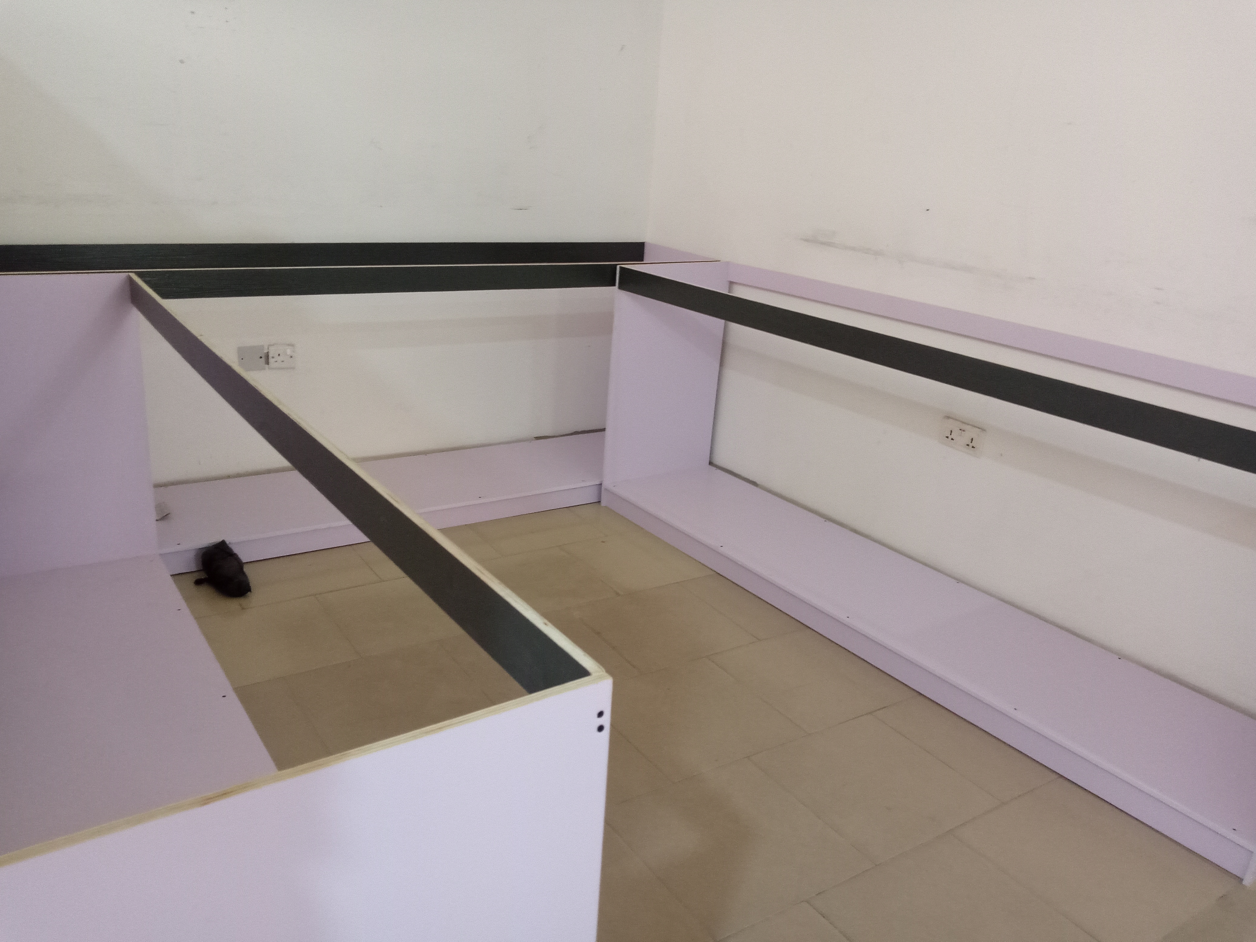 On this day, the furniture guy was on intense working with his team. All the tables, shelves, counters, cupboards and locks was carried out by the furniture team.