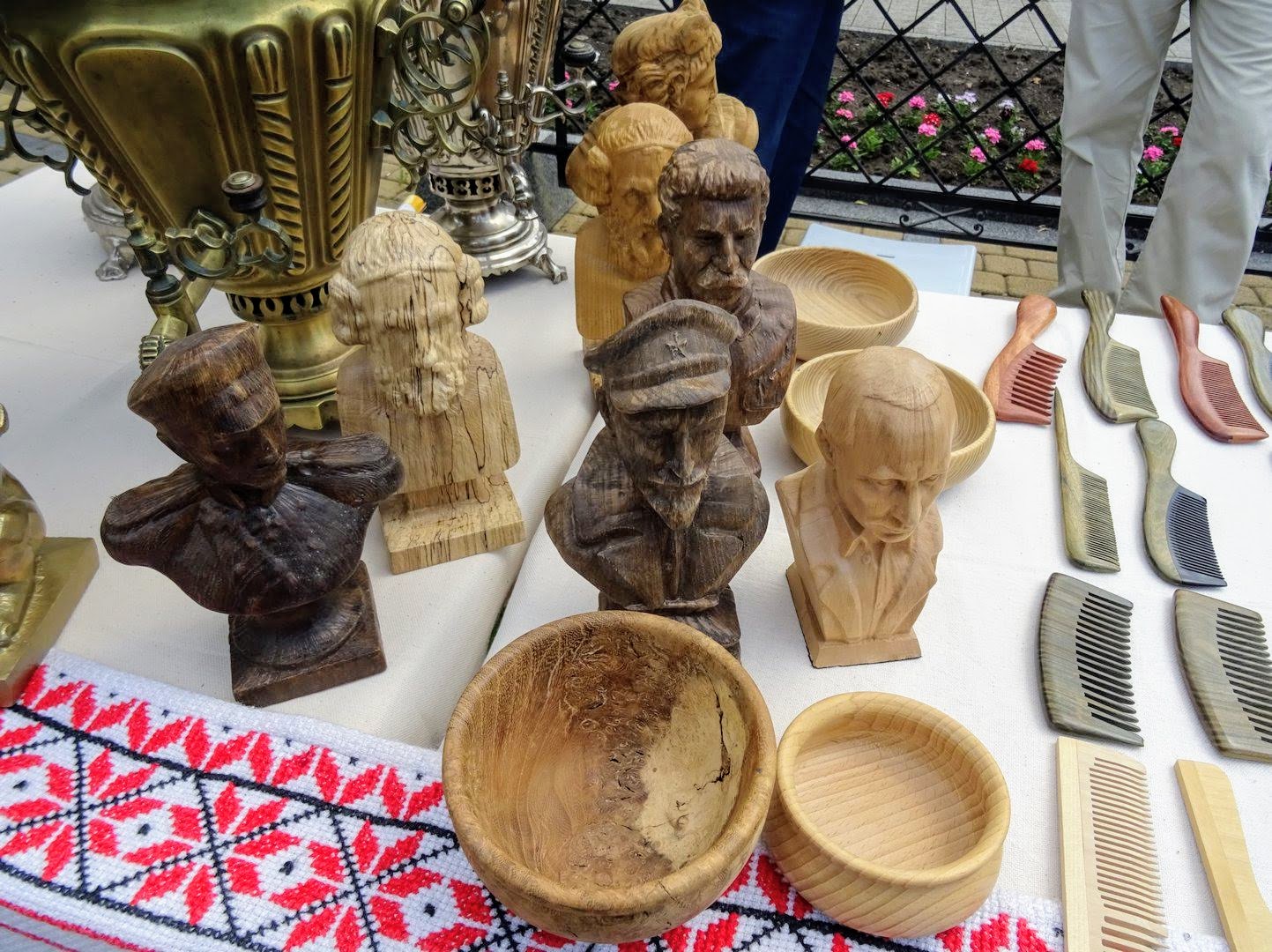 At our fairs, you can walk at least until the evening. No one will be bored. Sometimes there are also such wooden sculptures of outstanding people. Did you recognize anyone?
