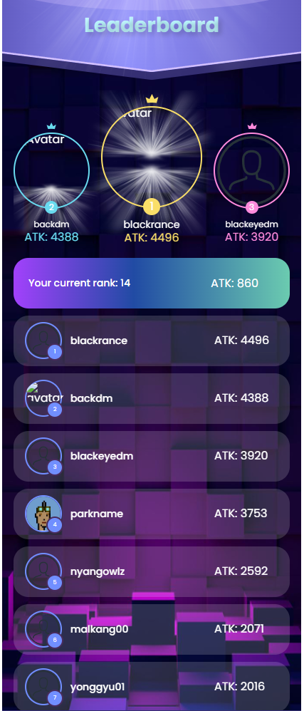 그러게요 조만간 랭킹에 따른 보상이 나오길 기대합니다!