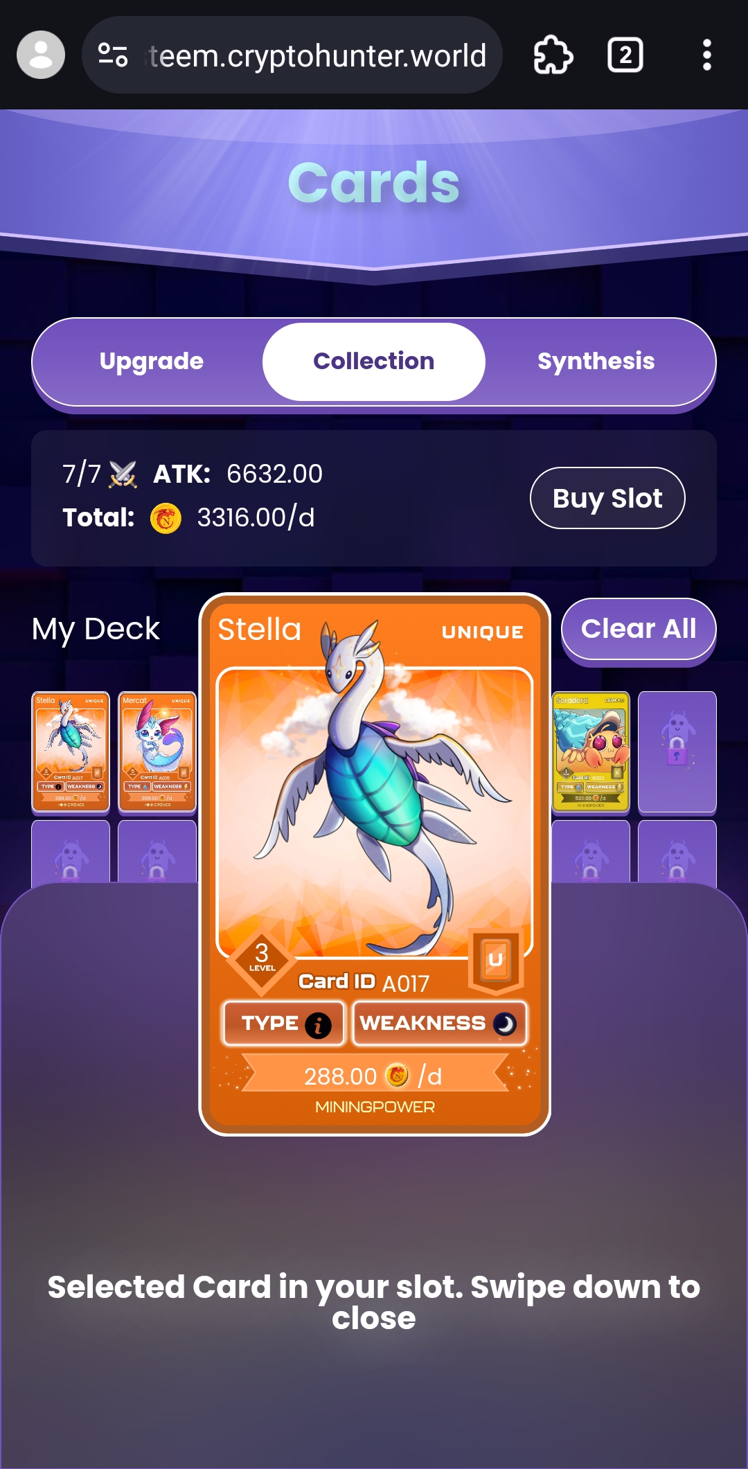Immediately equipped my Level 3 Unique card that had been sitting out due to the lack of slots.