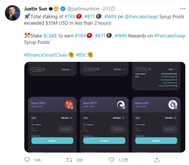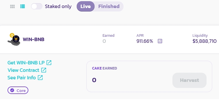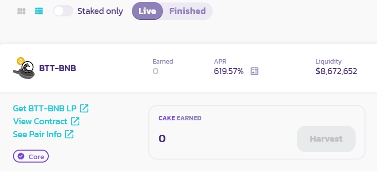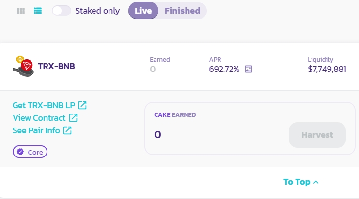 BSC체인 CAKE에 TRX BTT WIN을 일드파밍풀에 올렸습니다.
