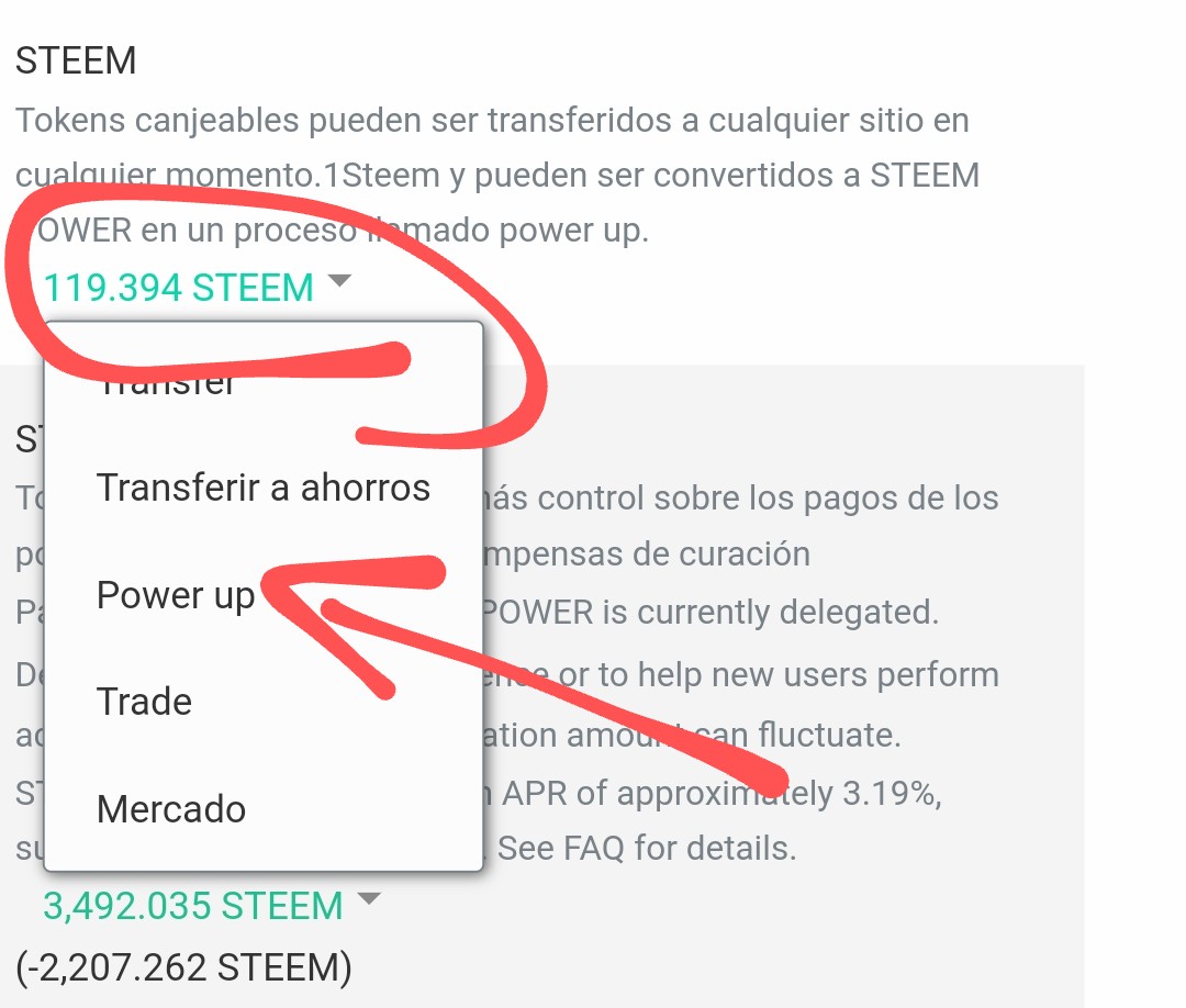 Primero en la billetera veo cuánto Steem tengo.
