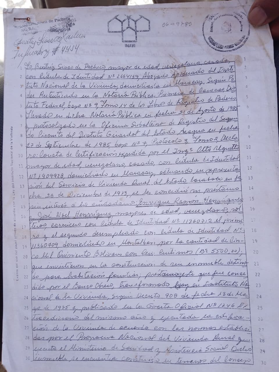 Estos son los documentos del terreno el cual fue una herencia recibida por el papá y el tío de Manuel. Ambos están de acuerdo en construir la vivienda allí.
