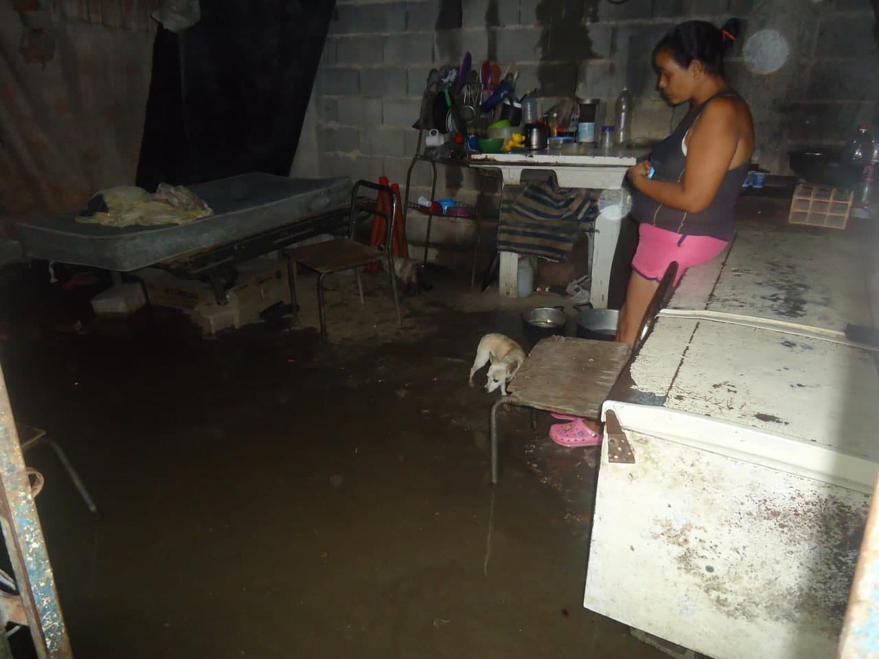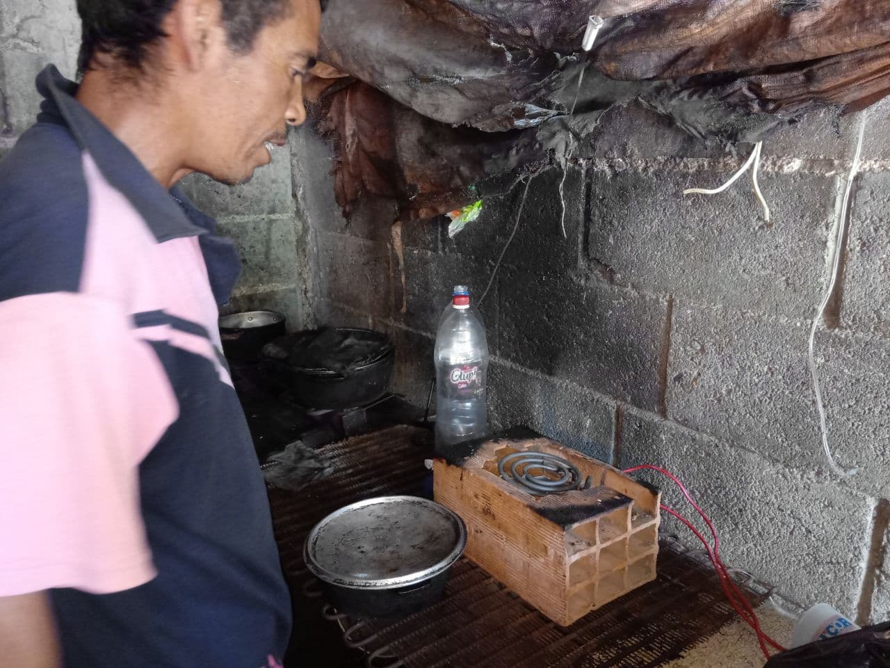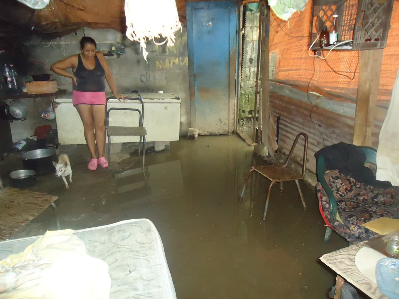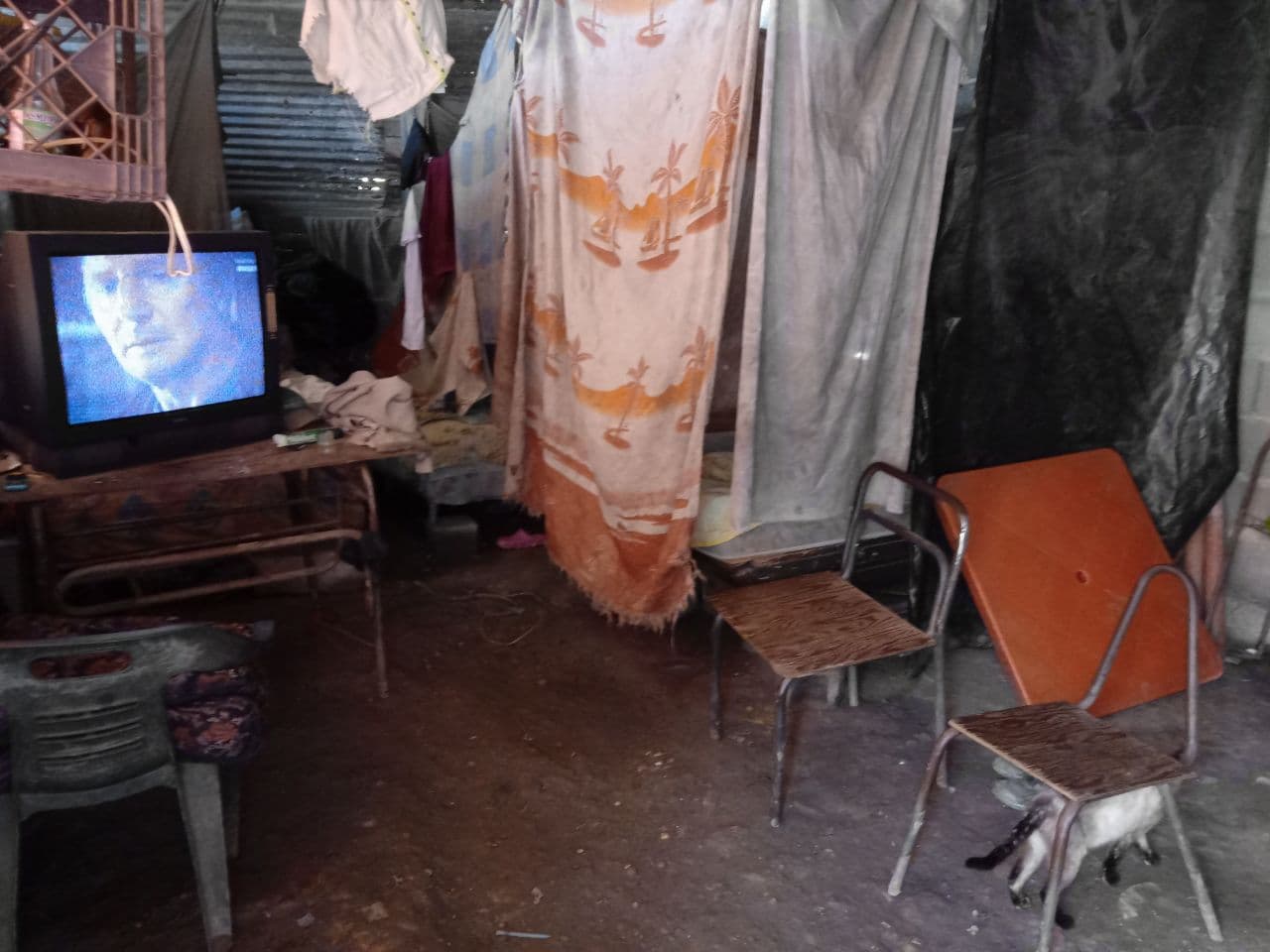 No tienen ni siquiera una pared propia, obtuvieron permiso de dos de sus vecinos para armar el rancho y protegerse por dos lados, pero el resto son láminas de zinc y tela de granjas de pollos.